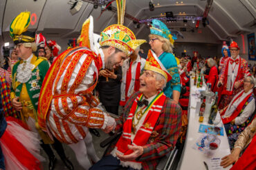 Mittwoch Abend im Sartory. Die Kostümsitzungist eine klassische traditionelle Sitzung mit einem bunt gemischtem Bühnenprogramm, zu der alle Gäste kostümiert kommen. More der Löstigen Innenstädter ist wie gewohnt ausverkauft, die Stimmung fröhlich, familiär. Man kennt sich in dieser Familiengesellschaft und feiert gern zusammen Fastelovend. Ein Hauch von Abschied ist diesmal aber auch dabei. Für Michael Jung, seit zehn Jahren Präsident der 1. Kleinen KG Löstige Innenstädter, ist es die letzte Veranstaltung in seinem Amt.
