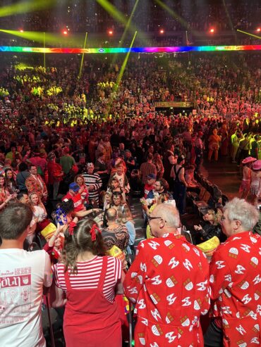 oder „Wenn wilde Tiere Ausgang habe“ oder „Wenn Kostüm- und Motto-Liebe aufeinander treffen“! „… Laut, Jeck bunt zesamme sin…“ Das Format der Lachenden Kölnarena gibt es tatsächlich schon seit 1965, damals noch unter der lachenden Sporthalle, bis 1999. Dieses Jahr sind es 15 Veranstaltungen, die von je 10.000 bis 15.000 Jecken besucht werden.