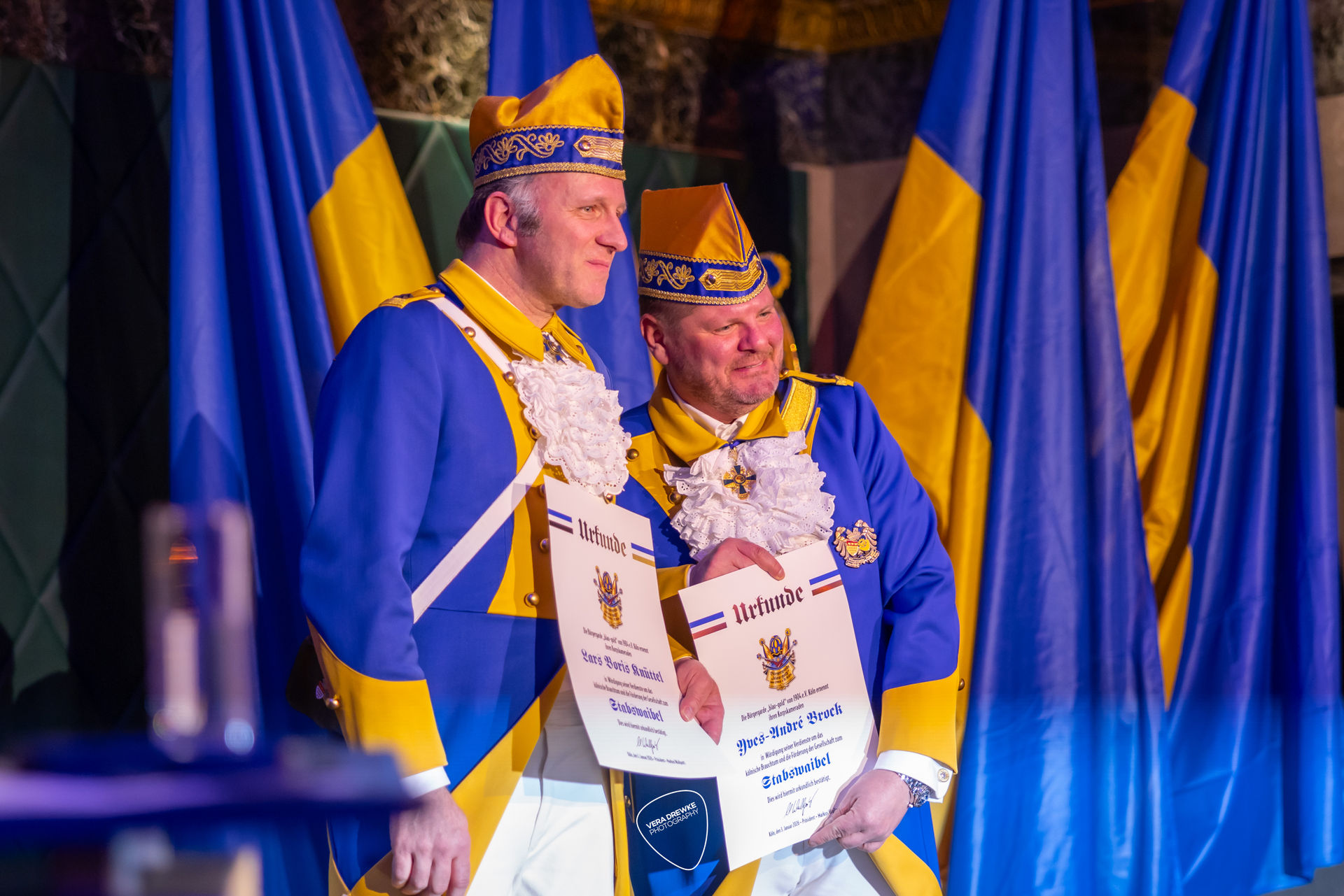 Zahlreiche Präsidenten und Präsidentinnen unterschiedlichster Gesellschaften gaben sich die Klinke in die Hand, ebenso Vertreter des Festkomitee Kölner Karnevalvertritt die Interessen von mehr als hundert Karnevalsgesellschaften und Vereinen. Seine Aufgabenliste reicht von der Organisation des Rosenmontagszuges, der Wahl und Vorbereitung des Dreigestirns, der Durchführung der Proklamation, der Jugend- und Nachwuchsförderung über die Darstellung des Kölner Karnevals in der Presse, die Vermarktung des Sessionslogos, die Übertragungsrechte für Hörfunk- und Fernsehsitzungen, die Vertretung gegenüber Stadt und Öffentlichkeit bis hin zur Dokumentation der eigenen Geschichte im Kölner Karnevalsmuseum. More, die in großer Abordnung anwesend waren. Auch das designierte Dreigestirn verfolgte den Abend als Gäste und noch ohne Bühnenpräsenz – dafür stehen ja noch ausreichend Termine im Kalender.