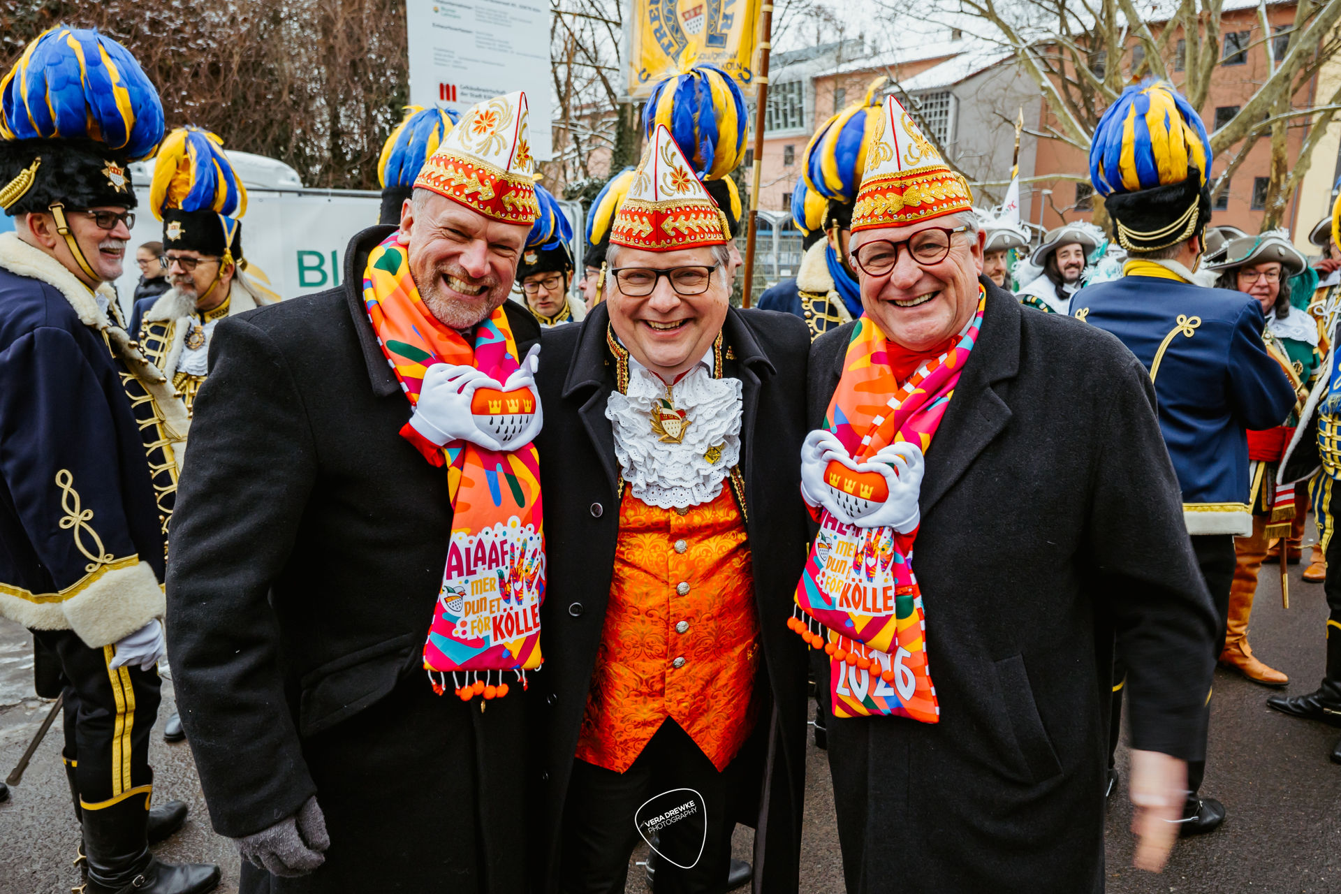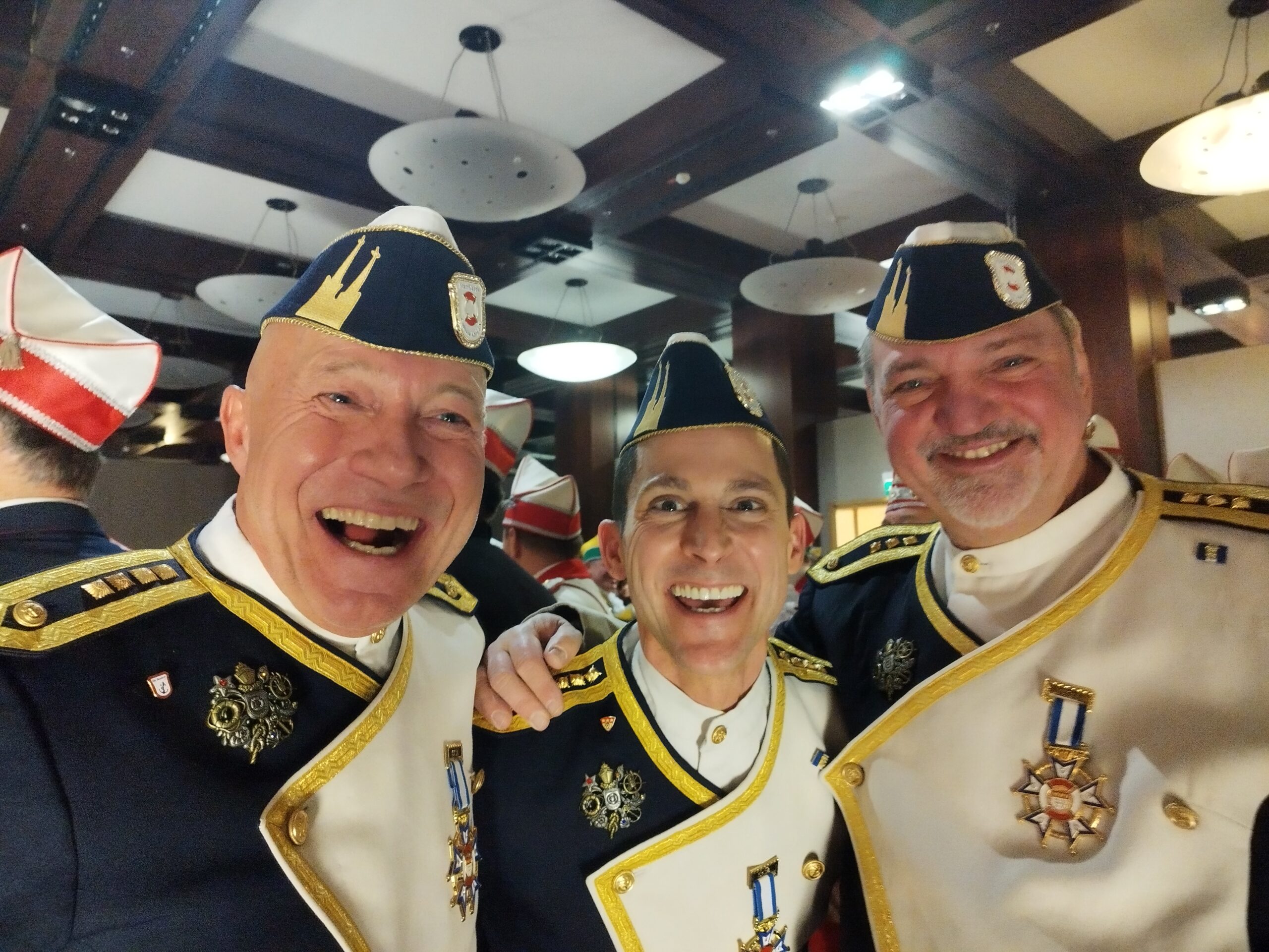In dieser Session stellt das Traditionskorpsist eine Ehrenbezeichnung. Zum Traditionskorps wird eine Gesellschaft vom Festkomitee-Praesidenten ernannt, weil sie sich mit ihrer Brauchtumsförderung in den historischen Uniformen um den Karneval verdient gemacht hat. Derzeit gibt es im Kölner Karneval neun Traditionskorps: die Roten und die Blauen Funken, die Ehrengarde, die Nippeser Bürgerwehr, die Bürgergarde blau-gold, die Prinzengarde, die Altstädter, der Treue Husar und das Reiterkorps Jan von Werth. More Prinzen-Garde Köln 1906 e. V. das Dreigestirn. Prinz Niklas I. (Niklas Jüngling), Bauer Clemens (Clemens von Blanckart) und Jungfrau Aenne (Stefan Blatt) werden über das jecke Kölner Volk regieren und für diese Zeit im siebten Stock des Hotels – ihrer Hofburgist die Residenz des Kölner Dreigestirns. Kurz vor der Proklamation ziehen das Dreigestirn und seine Adjutanten in Begleitung ihrer und befreundeter Gesellschaften mit großem Spektakel um 11.11 Uhr in die Hofburg ein, seit vielen Jahren das Hotel Pullman Cologne in der Helenenstraße. Dort überreicht ihnen der Hoteldirektor in einer jecken Feierstunde den goldenen Schlüssel. Bis Aschermittwoch residieren sie hier und können sich jeweils nachts ein paar Stunden von den Strapazen ihrer Auftritte erholen. More – residieren. Auf Dreikönige war es nun soweit.