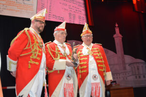Höhepunkt des Abends und für das Korps im Grunde der ganzen Session war der Auftritt ihres (noch designierten) Dreigestirns. Der Moderator des Korpsappells, Protokollchef der Prinzen-Garde, Marcus Gottschalk, präsentierte die Drei mit großer Freude und nicht zu übersehender Rührung.