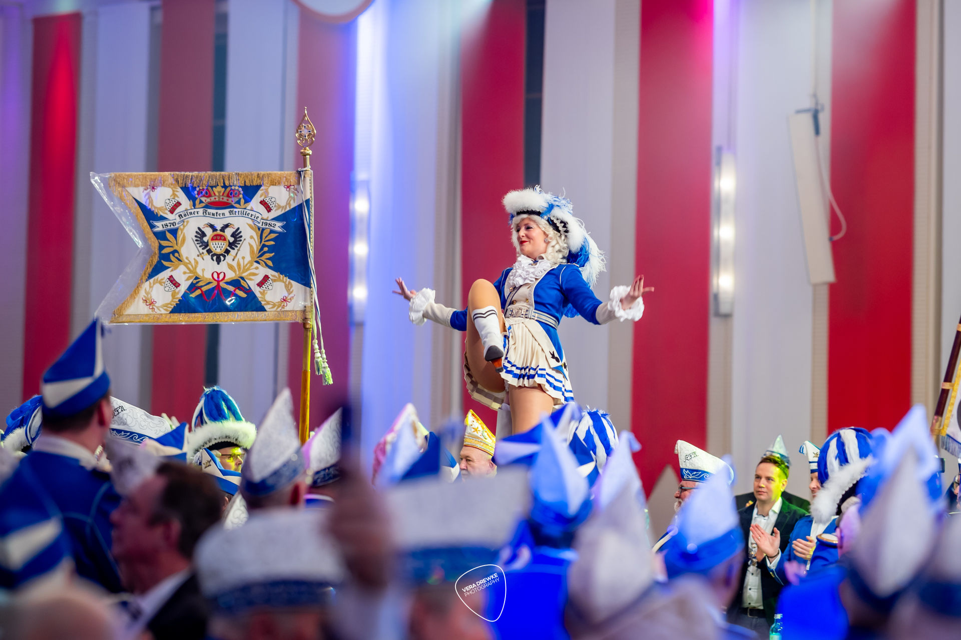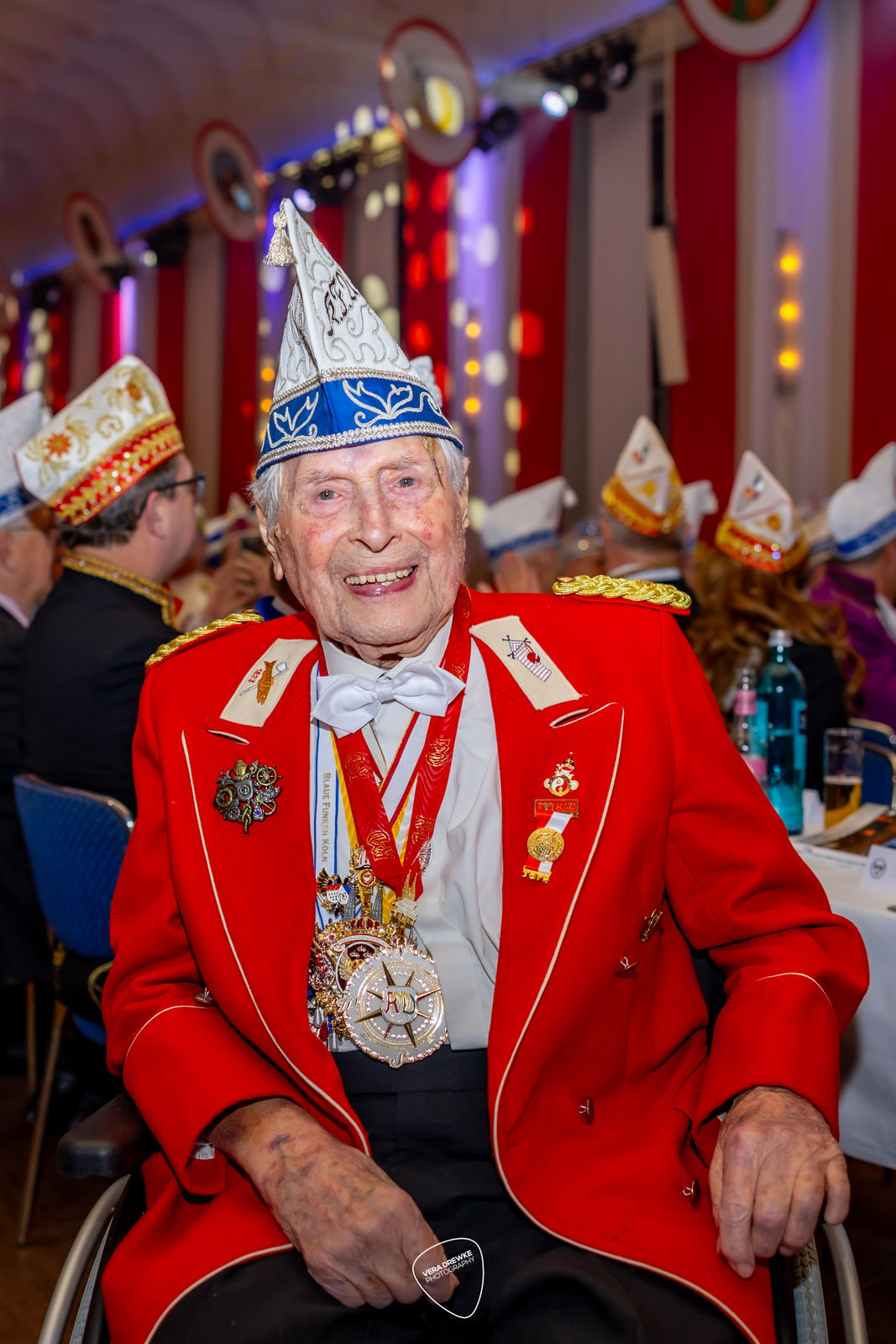 Bevor das Mariechen und das Korps tanzen, wird als erster Ehrengast Ludwig Sebus begrüßt, der auf der PriPro gerade mit dem Verdienstorden in Gold mit Brillanten ausgezeichnet wurde.