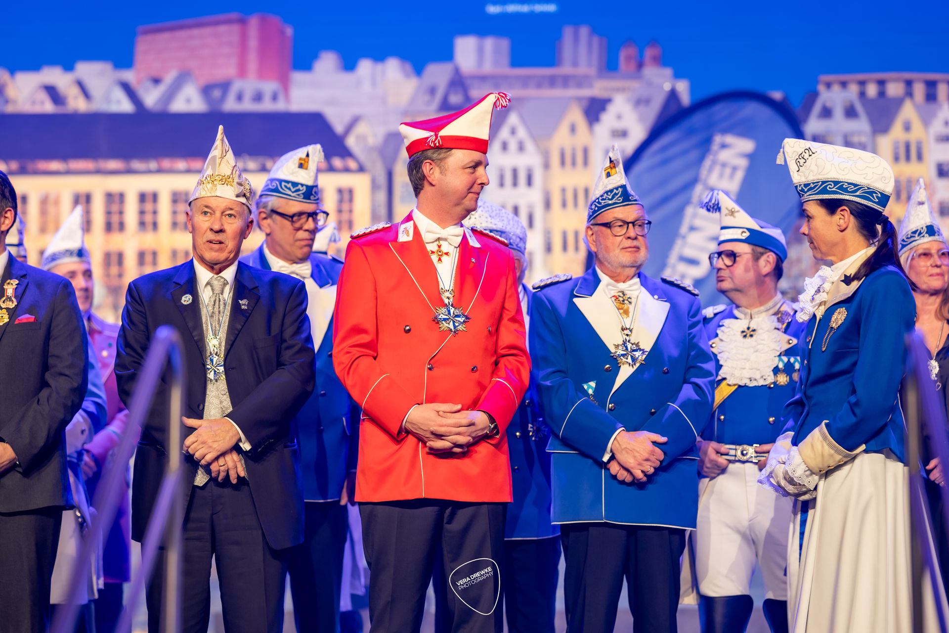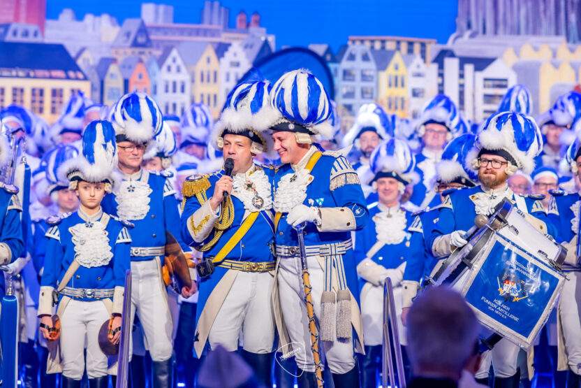 Mit schönen Erinnerungen an den fulminanten Abend am Freitag im Gürzenich kam das Dreigestirn dann nicht im Ornat, sondern in seiner Prinzen-Garde-Uniform auf die Bühne. Und Björn Griesemann hob noch einmal hervor: „Wir sind nicht nur Nachbarn, sondern echte Freunde!“