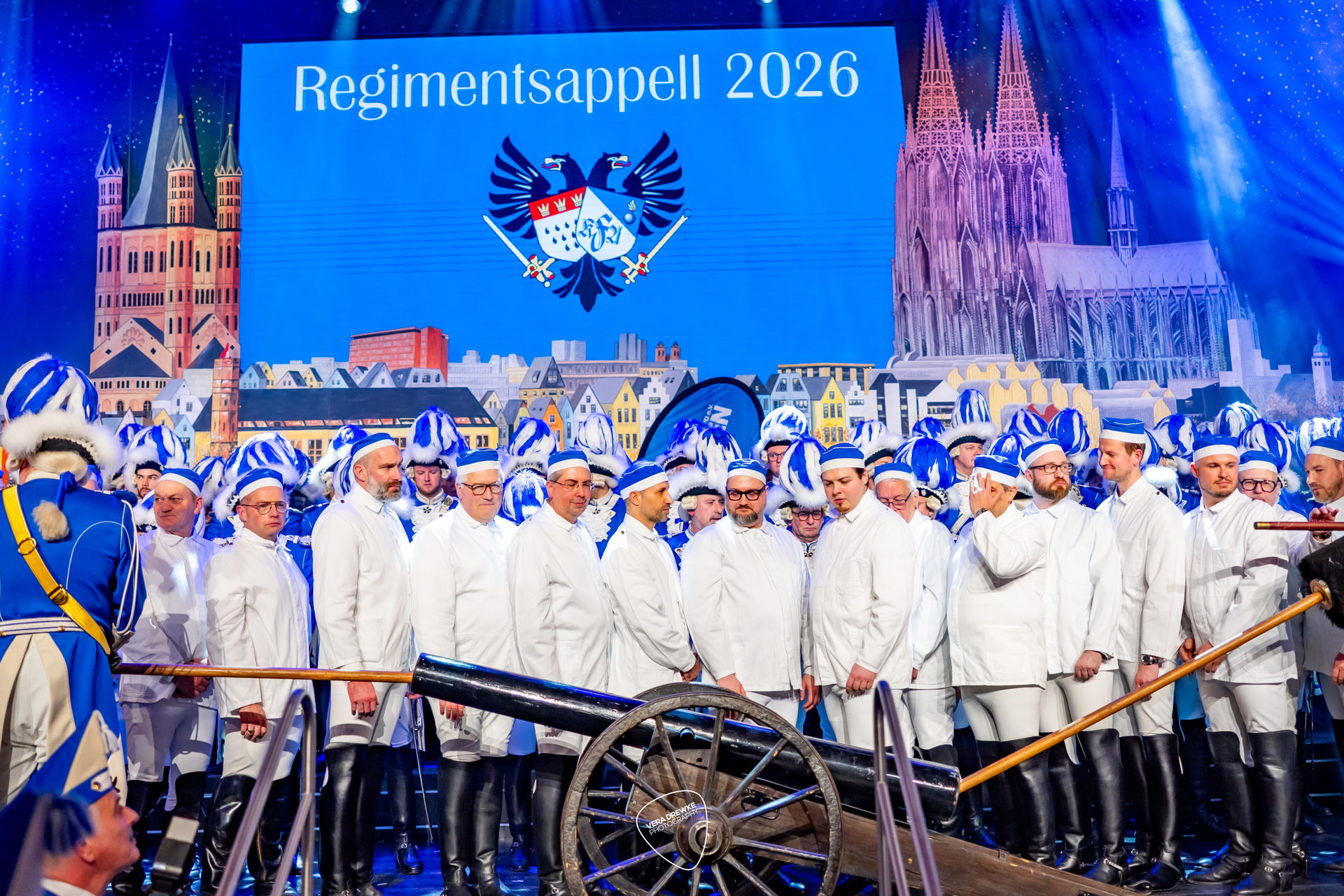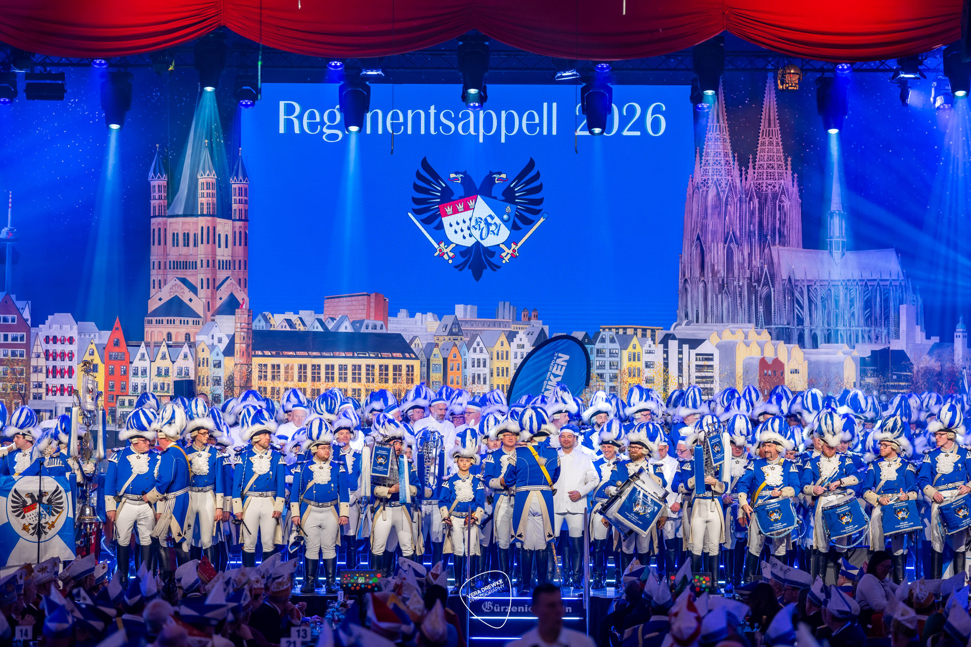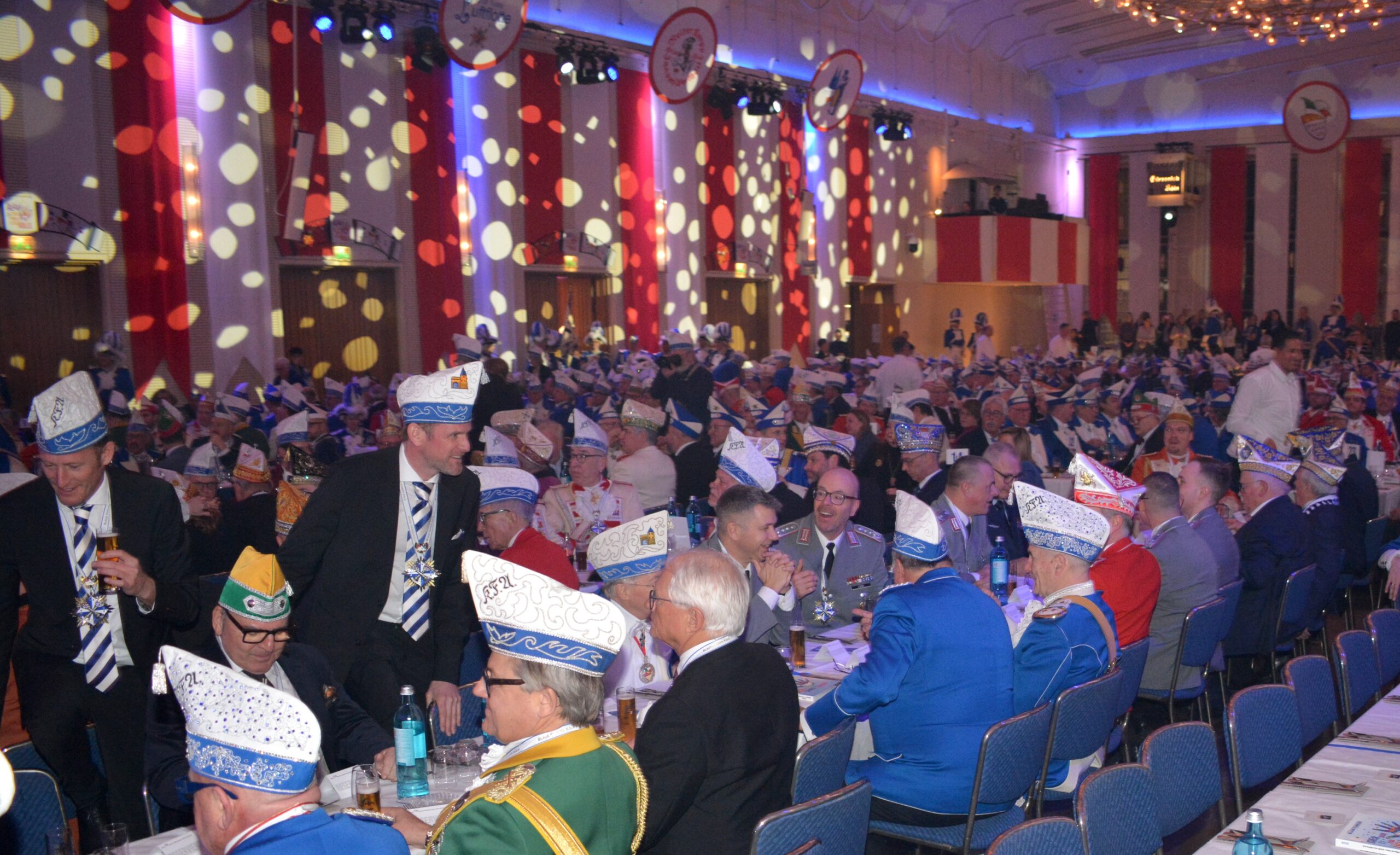 … wemmer all zosamme sin. So war es auch beim Regimentsappell der Blauen Funken. Obwohl es der letzte in der langen Reihe der Korpsappelle war und der Montag eigentlich der karnevalsfreie Tag für Karnevalisten ist. Aber zu den Blauen Funken kommen alle immer gerne und so waren die Präsidenten vieler Karnevalsgesellschaften sowie alles, was in der Stadt- und  Karnevalsgesellschaft hat, vertreten.
