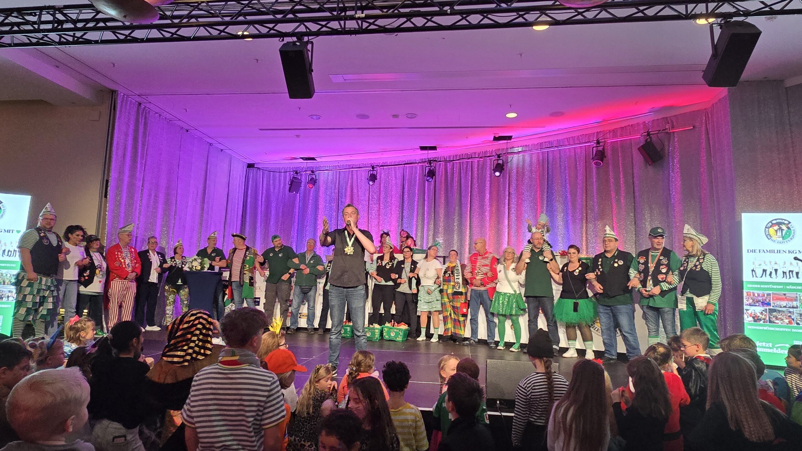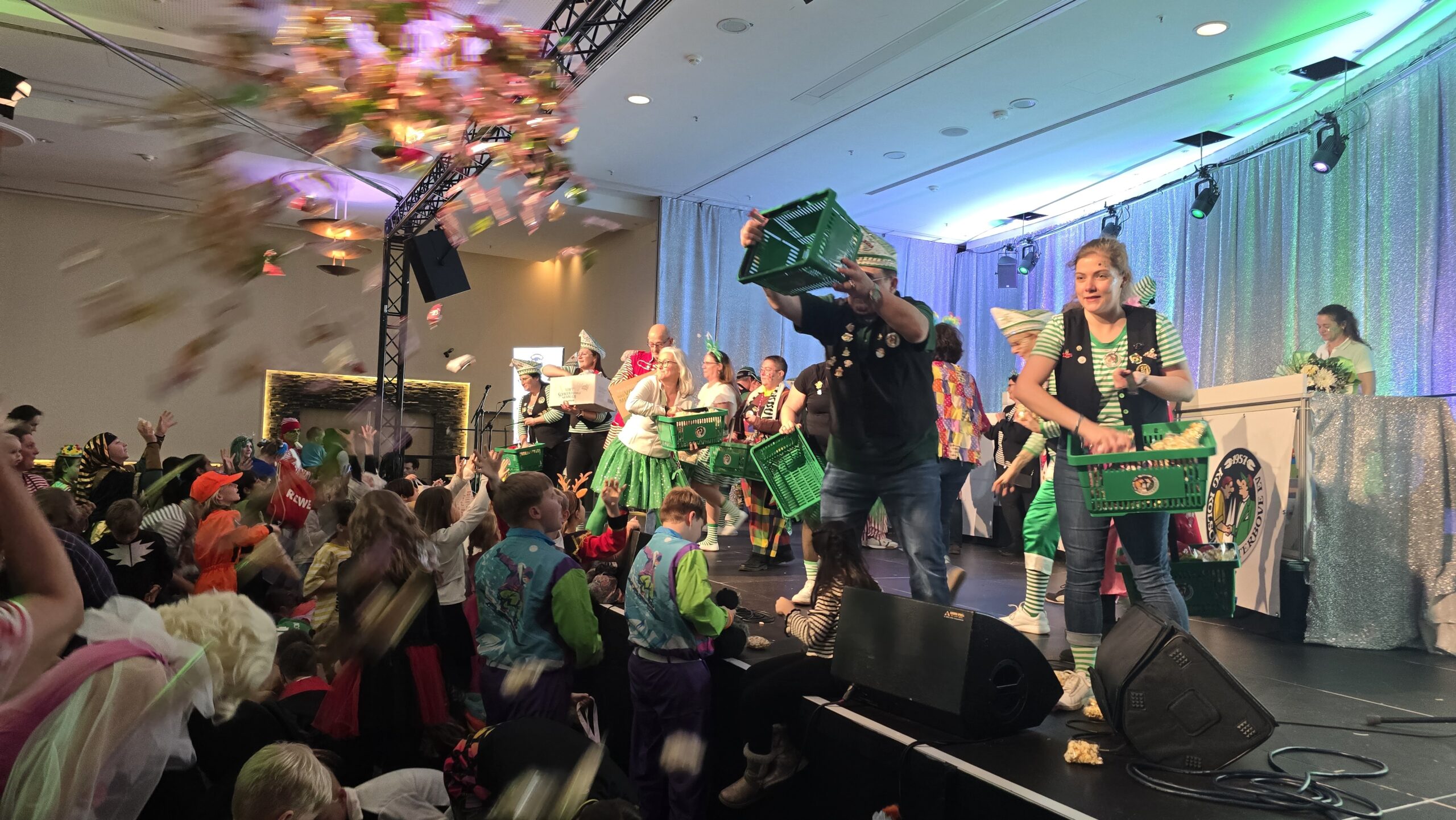 Den stimmungsvollen Auftakt machten die Husarenpänz, die Kinder- und Jugendtanzgruppe der KG Treuer Husar Blau-Gelb von 1925 e.V. Kaum waren sie von der Bühne, rieselte auch schon der erste Kamelleregen herab. Und das blieb nicht der einzige – nach jeder Nummer flogen die Süßigkeiten. Zwischendurch kam immer wieder jemand mit einem Körbchen voller Kamellehochdeutsch Bonbons, werden im Zug geworfen. Dazu zählen nicht nur einfache Bonbons, sondern auch Waffeln, Weingummis, Schokolade, Pralinen und Ähnliches. More vorbei. Hier ging wirklich, niemand leer aus 🍬