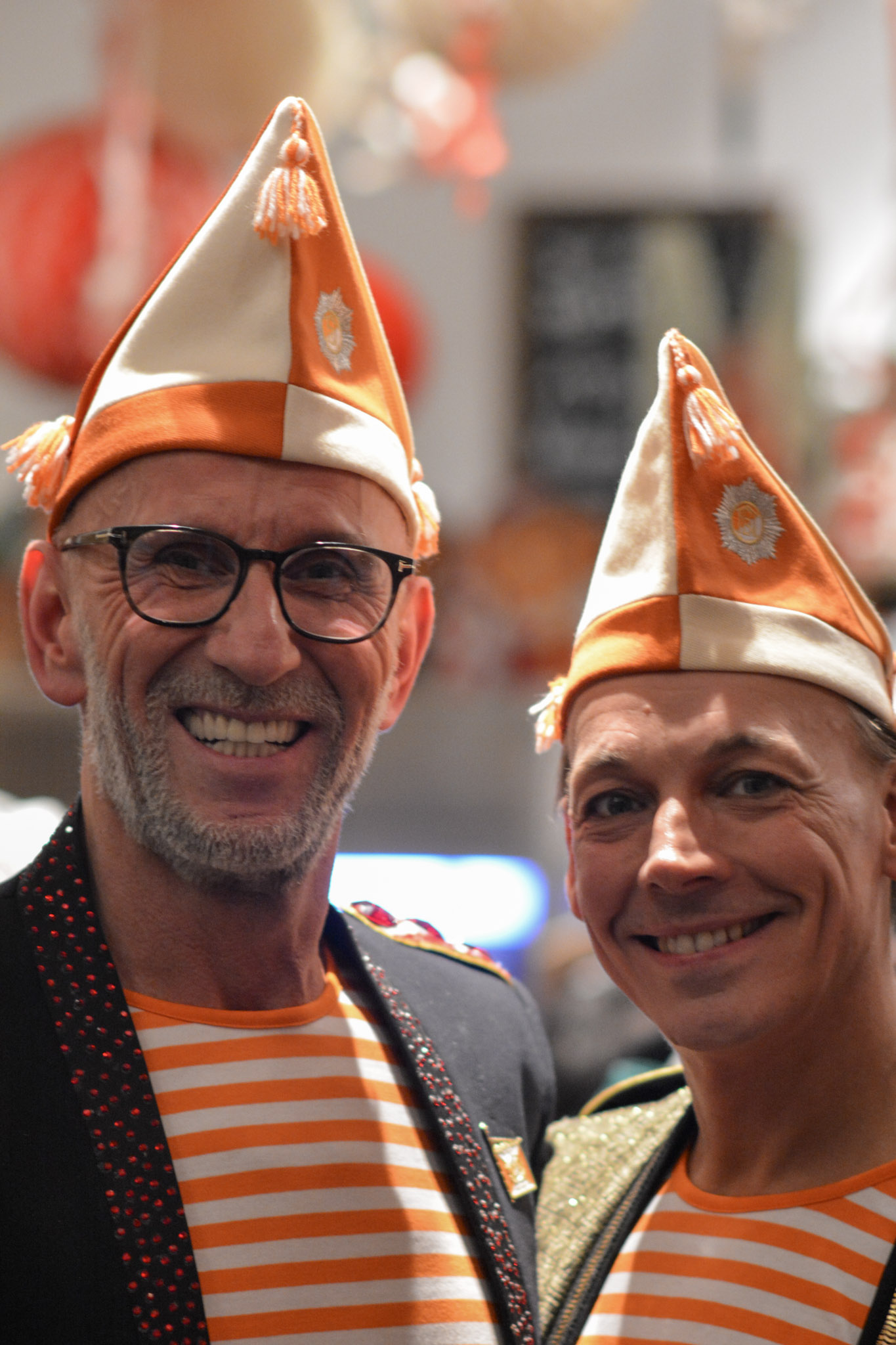 Auch die Intendanten des Scala-Theaters, Ralf Bongartz und Arne Hoffmann, stilecht in orange-weißer Apfelsinenfunken-Manier erschienen, ließen sich den Abend nicht entgehen.