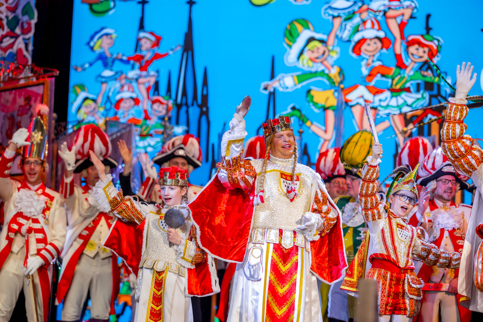 Das jährliche Highlight folgte mit dem Einzug der Plaggeköpp, die gemeinsam mit dem Kölner Dreigestirn und dem Kinderdreigestirn als Sechsgestirn auf der Bühne standen. Anschließend ging es für alle hinunter in den Saal – und dort wurde Karnevalkommt von „Carne vale! Fleisch, lebe wohl!“und bringt den Charakter des Festes als Freudenfest vor der langen Fastenzeit zum Ausdruck bringt. More im wahrsten Sinne des Wortes greifbar.