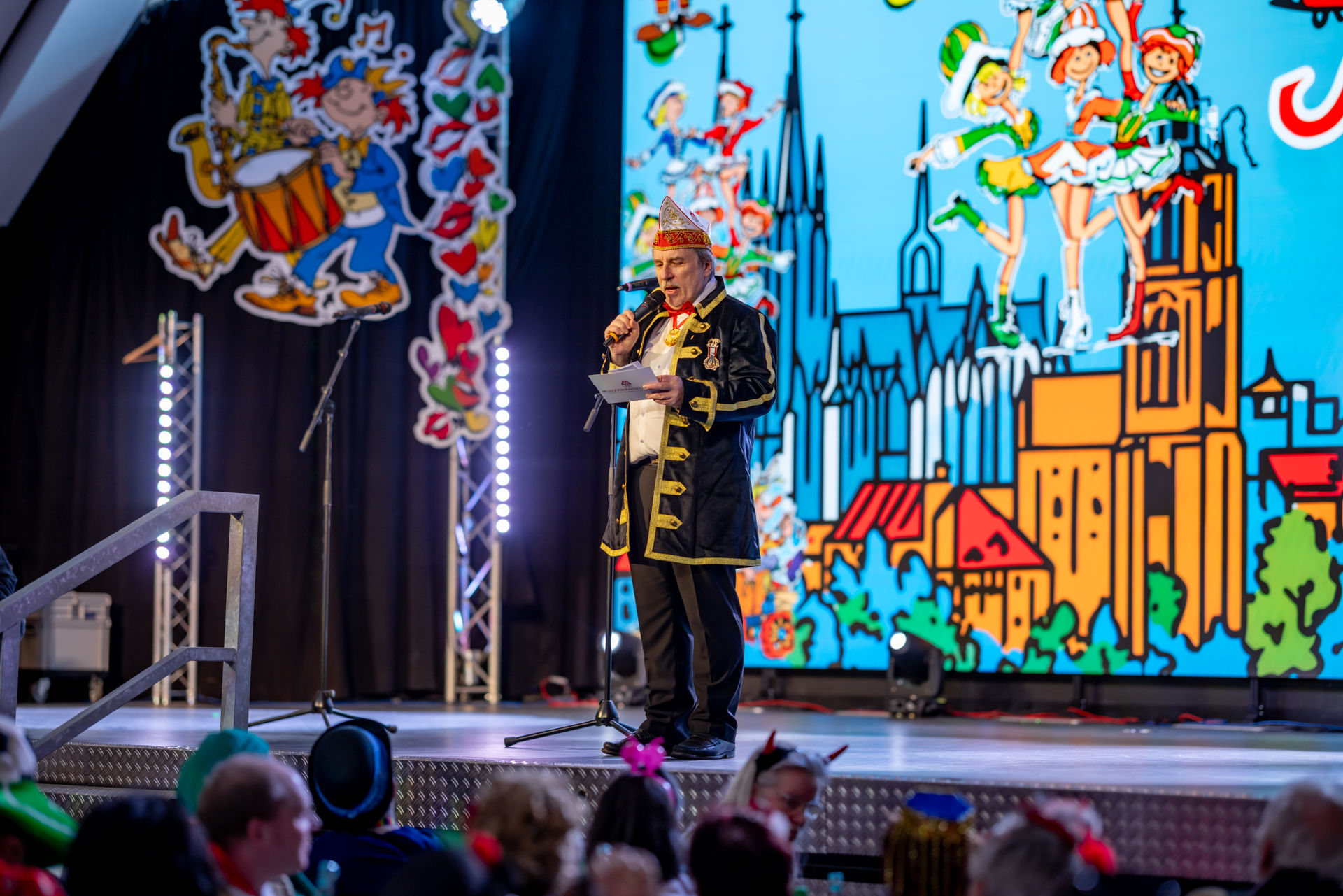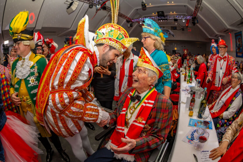 Auch der Ludwig-Sebus-Fanclub inkl. dem Jahrhundert Kölner himself, war wieder mit rund 30 Personen vor Ort und sorgte für spürbare Stimmung im Saal. Das Programm entsprach ganz bewusst einer klassischen Karnevalssitzung: Musik, Tanz und Rede – genauso bunt, laut und lebendig wie bei jeder anderen Sitzungist eine Karnevalsveranstaltung zwischen der Proklamation und Karnevalsdienstag mit einem bunt gemischten Bühnenprogramm: Tanzgruppen und Korpsgesellschaften ziehen in den Saal und präsentieren ihre Tanzkünste, Büttenredner widmen sich mit Witz und Ironie den großen und kleinen Themen der Welt und kölsche Musiker reißen das Publikum von den Stühlen. Highlights sind der Einzug des Dreigestirns und die Ansprache des Prinzen an sein „Narrenvolk“. More auch.
