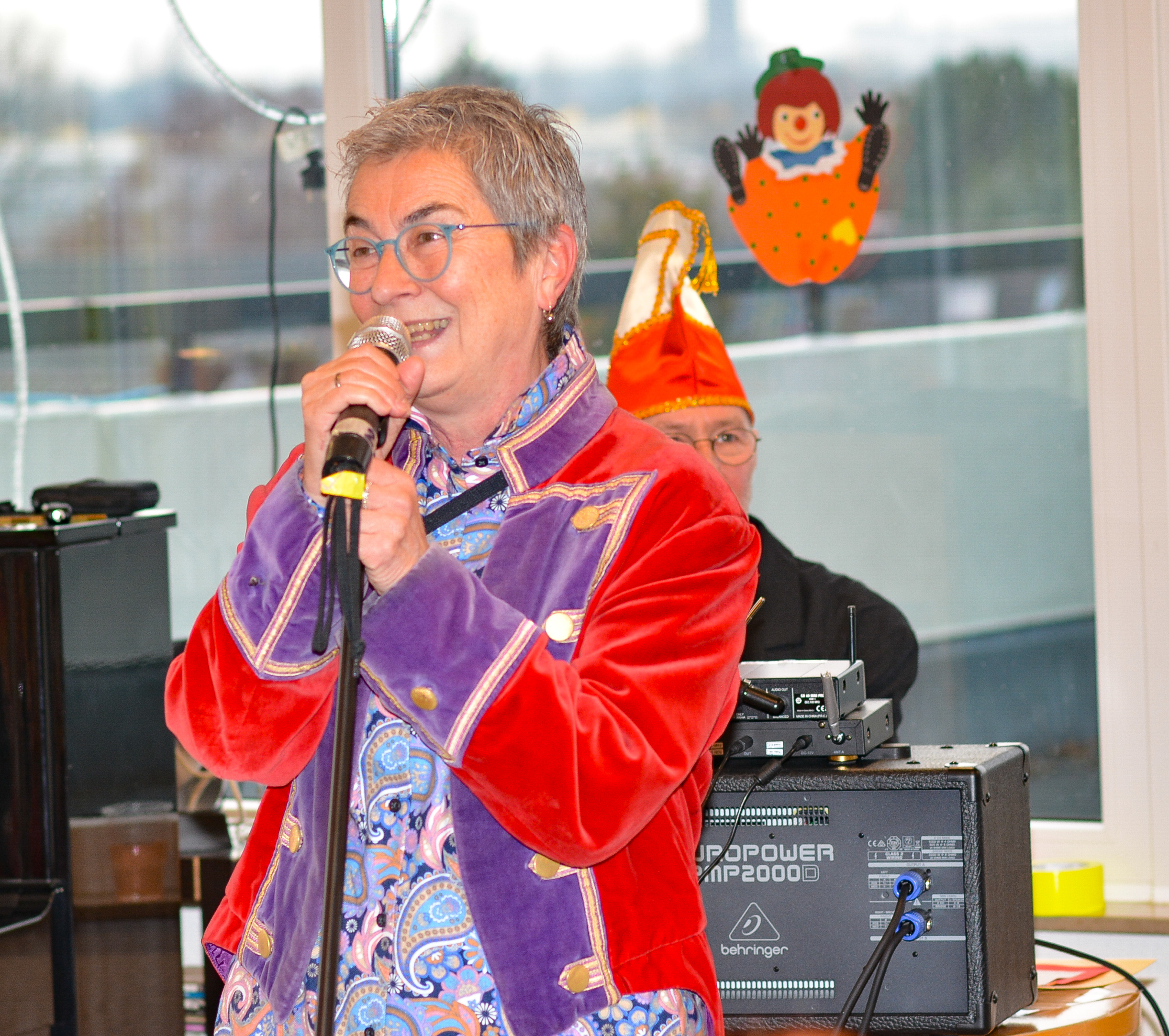 Mit „En d’r Kayjass Nummero Null“ ging es musikalisch weiter – und ganz nebenbei erfuhren die Seniorinnen und Senioren auch, dass es den Lehrer Welsch tatsächlich gegeben hat. Der engagierte Pädagoge setzte sich für leistungsschwächere Kinder ein und gründete eine Hilfsschule im Industrie- und Arbeiterviertel von Kalk.
