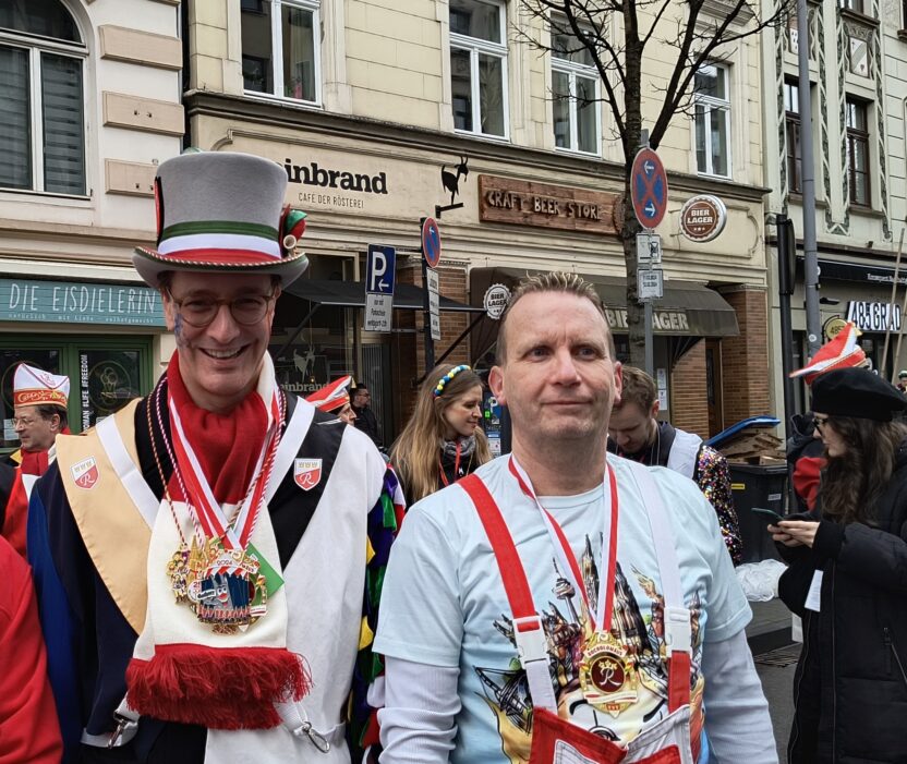 Für ihn ist die Sache klar: „Ich möchte den Menschen etwas geben, ihnen Zeit schenken.“ Dieses Engagement lebt er auch im Vorstand des Worringer Gartenvereins. Sein Dank? Die Freude der Jecken am Straßenrand, die lachenden Kinder oder Freunde und Freundinnen, die ihm im Zoch zuwinken. Unvergesslich war für ihn der letzte Zoch, als Ministerpräsident Hendrik Wüst in einer Fußgruppe mitlief und Winters die Sicherheitsmaßnahmen aus nächster Nähe erlebte.