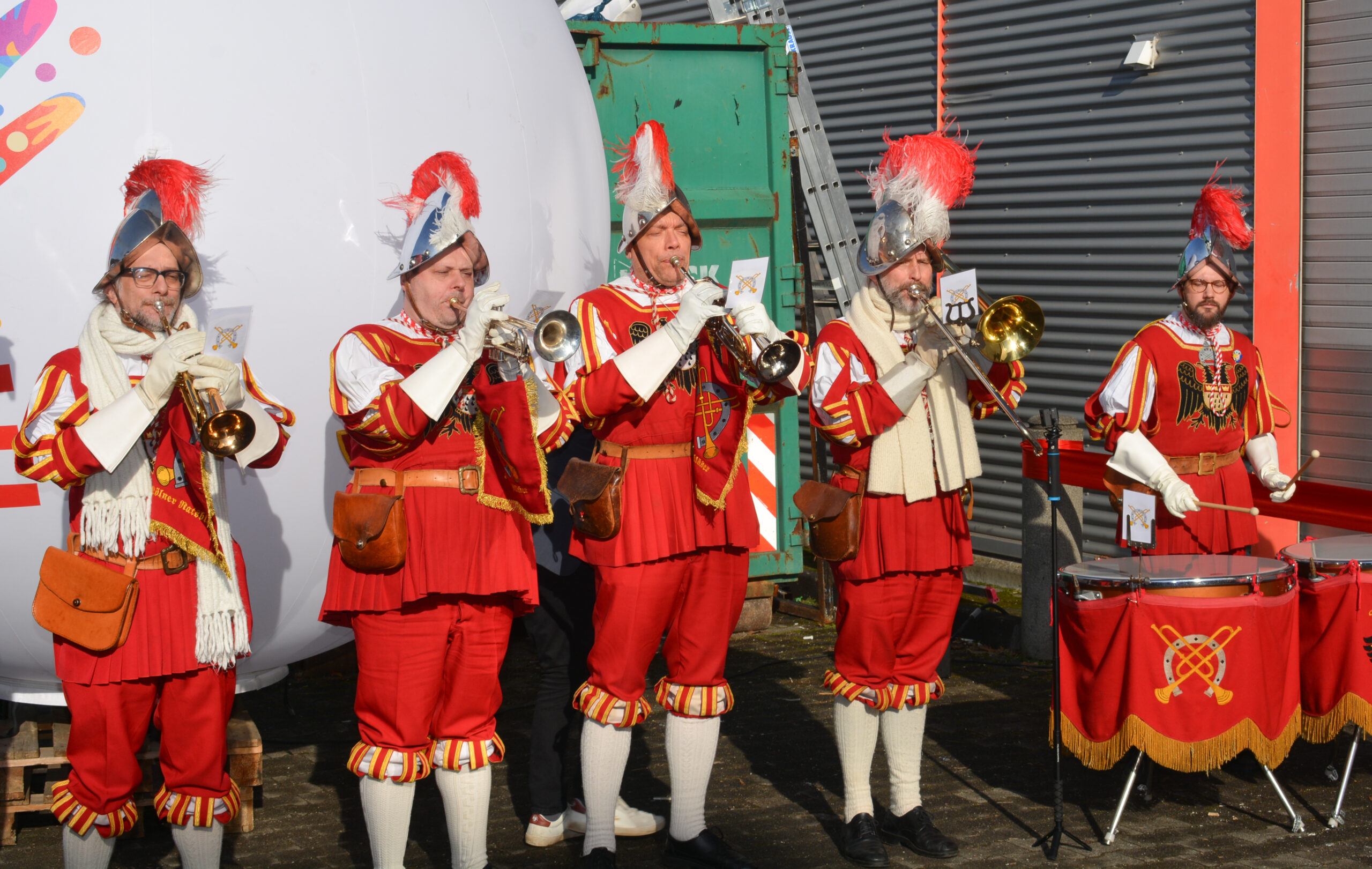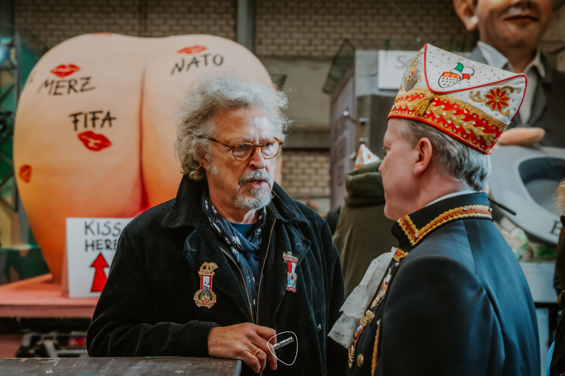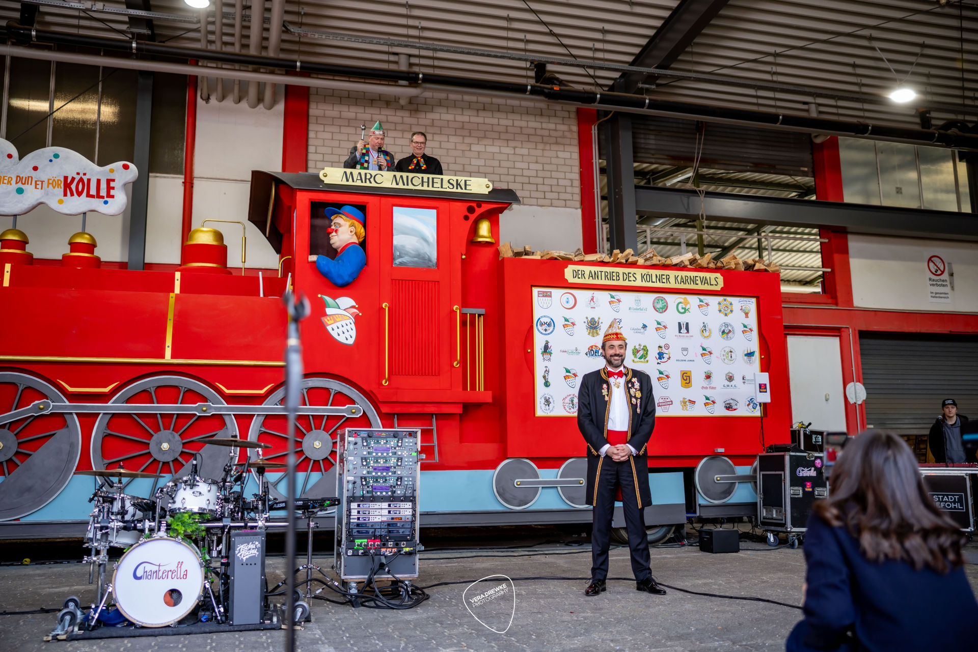 Unter der musikalischen Begleitung von „Chantarella“, „Stadtjeföhl“ und „Rotznas“ (Jens Büttemeyer) konnte man sich die Wagen anschauen. Zusammen mit den Rednern „Ne Kleinkarierte“ (Elmar Malburg) und „Ne Jeck im Rain“ (Björn Wassong) werden die Musiker auf dem Wagen des Literarischen Komitees des FK im Zoch mitfahren.