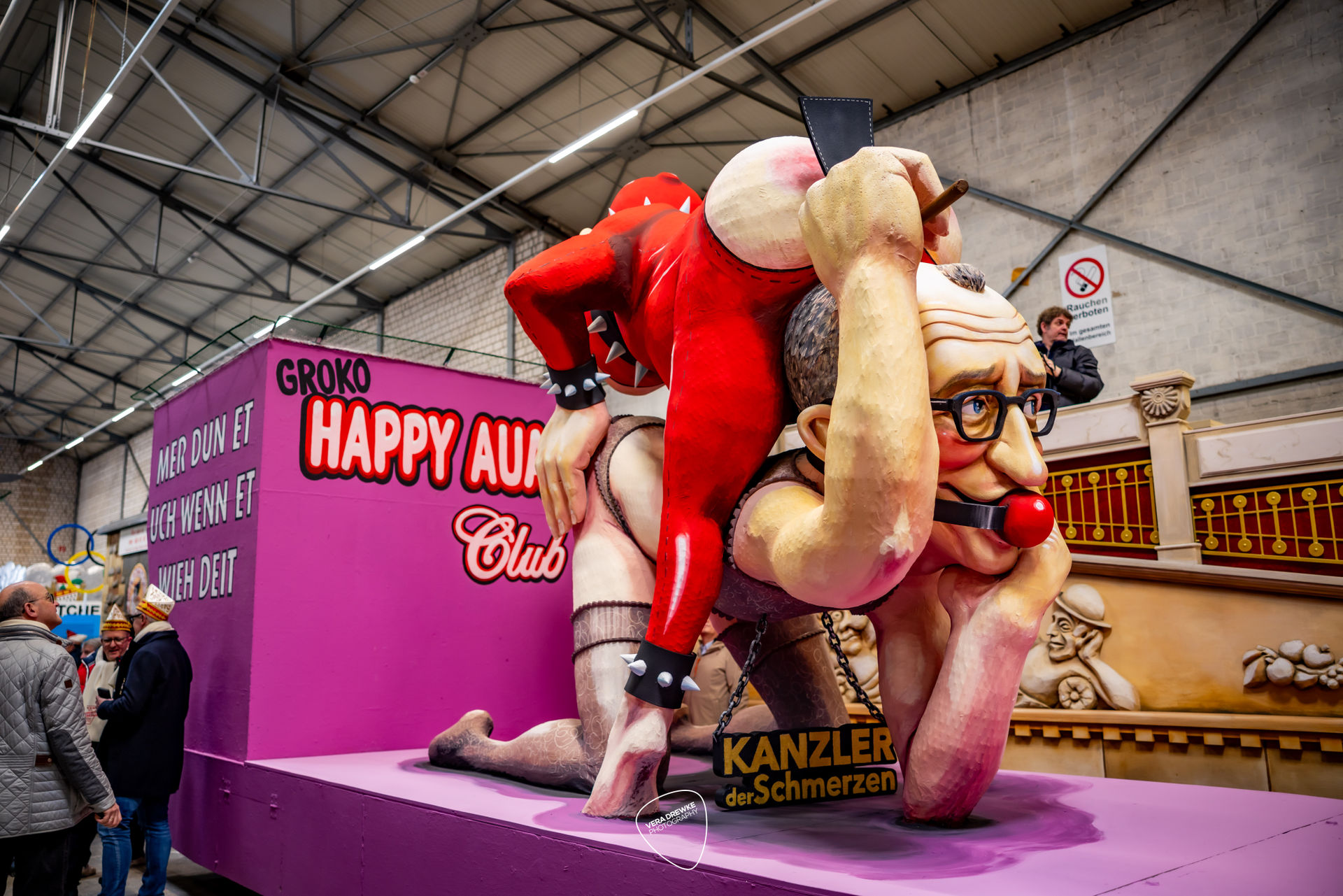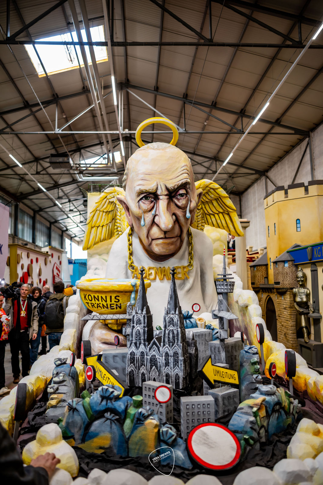 Eine wunderbare Hommage zu ihrem 95. Geburtstag ist Biggi Fahnenschreiber-Depenheuer, der Grand Dame des Kölner Karnevaltanzes, mit dem Wagen „Mer dun et, mer dun et nit“ gewidmet. Hier wird die „unendliche Geschichte“ der Opernsanierung von 2012 bis heute thematisiert. Vor der Kulisse des Riphahn-Baus vollführt die „Mutter der Mariechen“ einen perfekten Spitzentanz. Neben der Frage, ob die Wiedereröffnung tatsächlich zur Spielzeit 2026/27 stattfinden wird, steht auch die, ob sich die Kölner Politik dazu durchringen kann, dem Tanz in Köln wieder ein dauerhaftes Zuhause zu geben.
