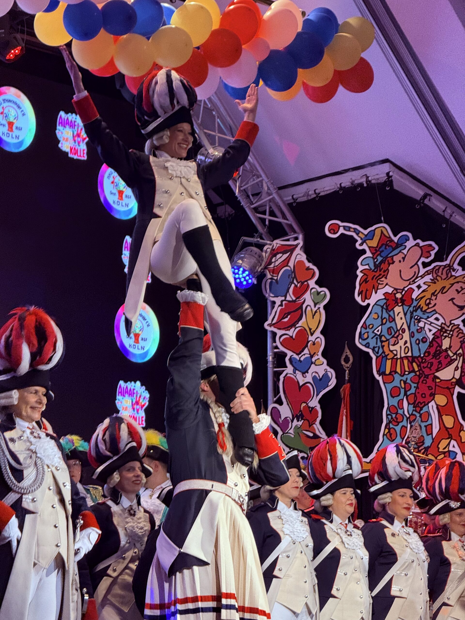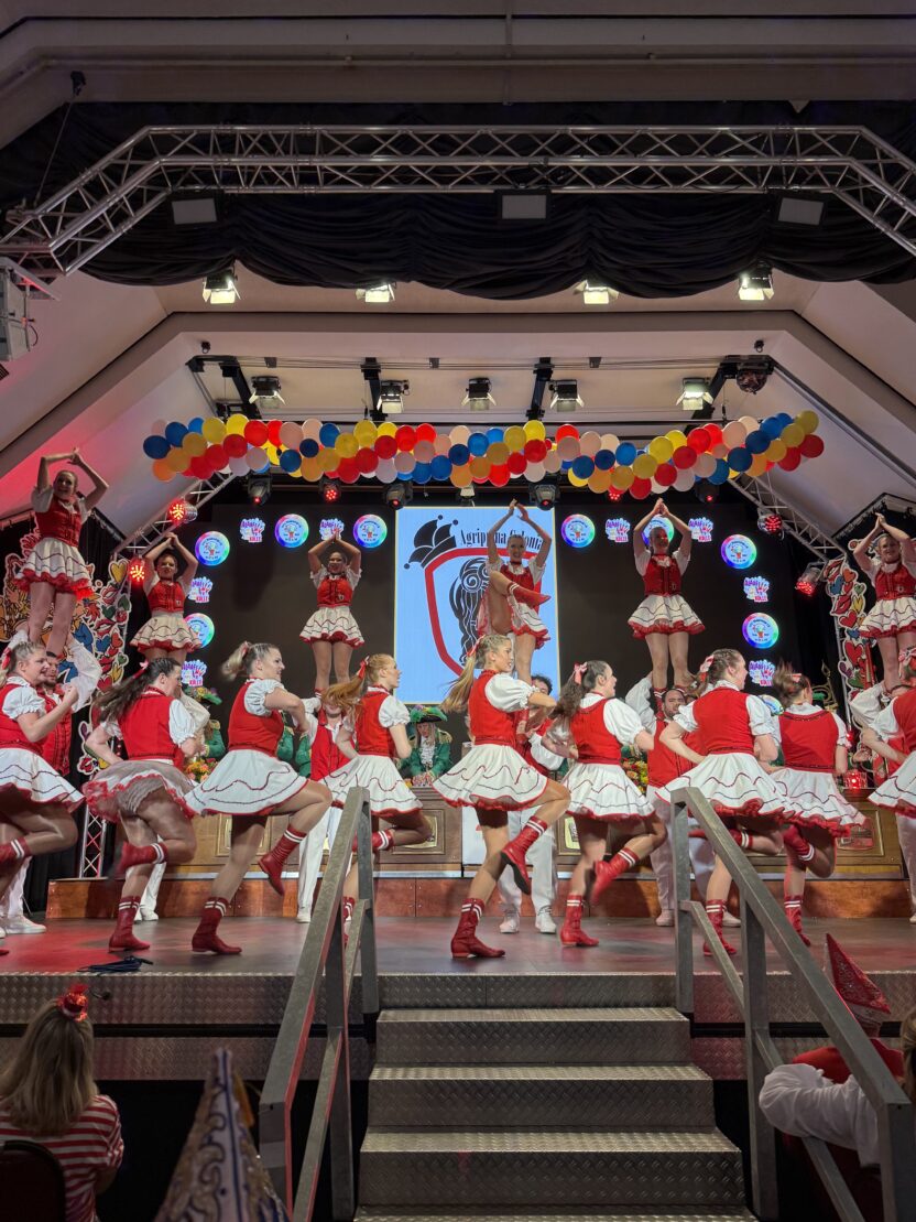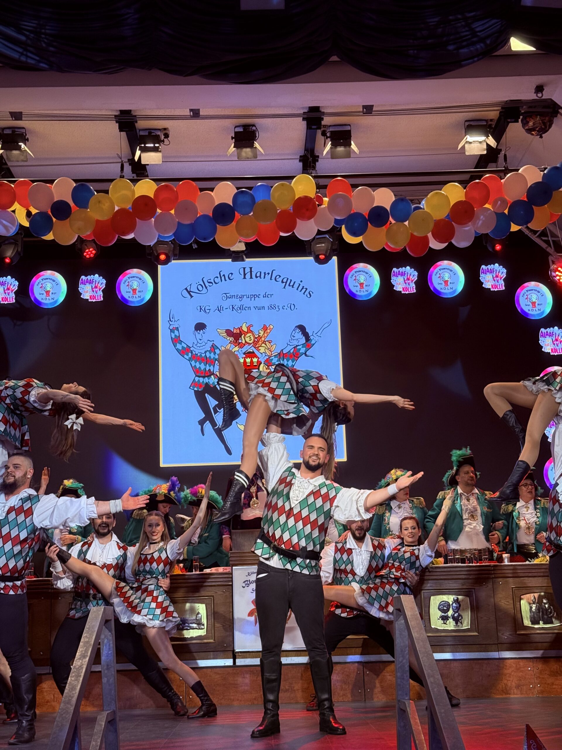 Um das Brauchtum abzurunden, zeigten die original kölschen Tanzgruppen Agrippina Colonia & die Kölsche Harlequins wunderbare Tänze auf der Bühne. Trotz der Tatsache, dass wir uns fast am Ende der Session befinden, haben beide Tanzgruppen nach wie vor ihre beste Performance auf die Bühne gebracht. Im Übrigen an dieser Stelle ein kleiner Insider: Agrippina Colonia wird von Carinas Eltern – Karl-Heinz & Gaby Autermann – tatkräftig im Vorstand unterstützt :). Das ist wieder ein wunderbares Beispiel dafür, wie generationsübergreifend der Karnevalkommt von „Carne vale! Fleisch, lebe wohl!“und bringt den Charakter des Festes als Freudenfest vor der langen Fastenzeit zum Ausdruck bringt. More in Familien lebt.