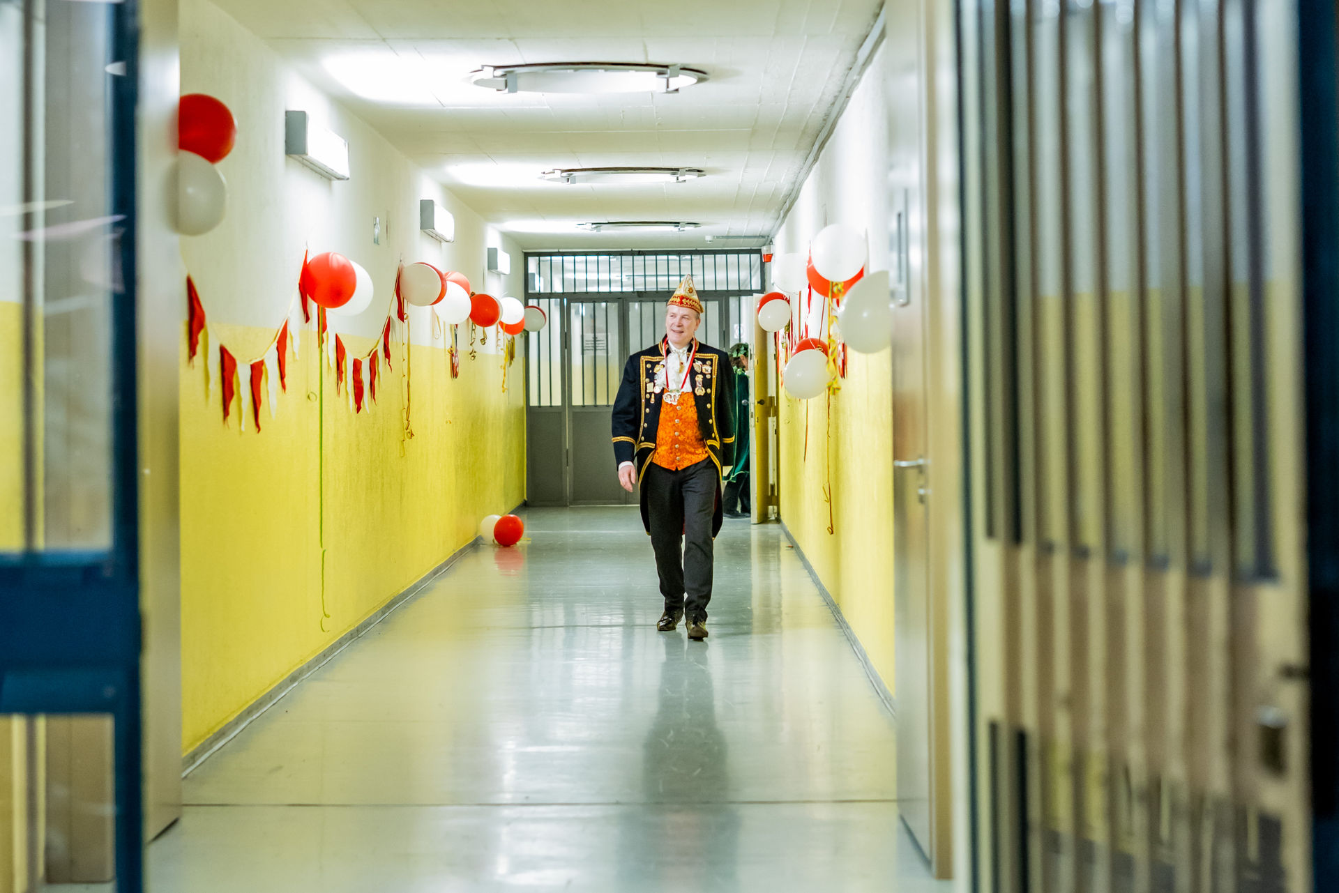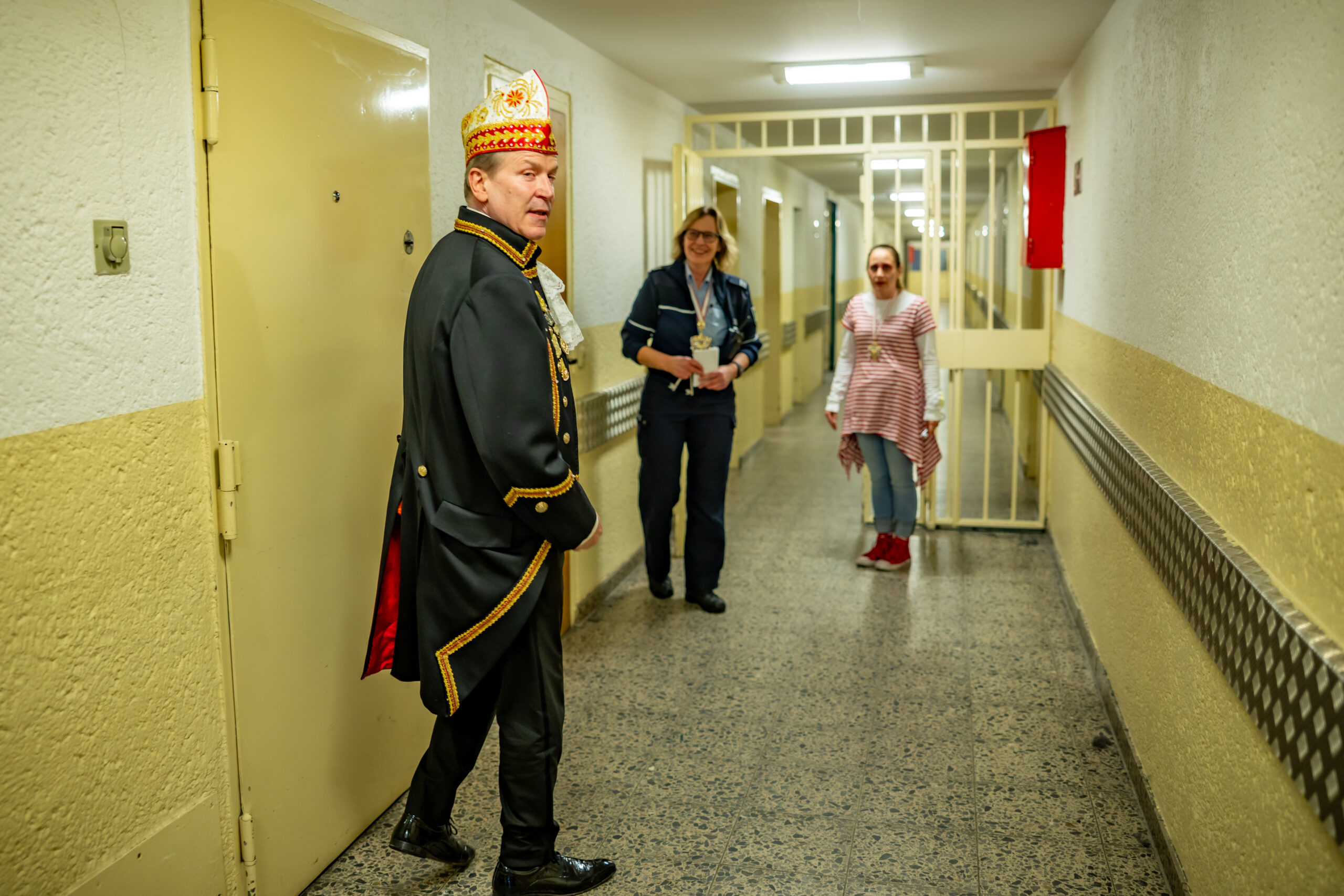 Ein besonderer Termin, der direkt emotional reinhaut. Die Veranstaltung wird vom Festkomitee ausgerichtet und alle Künstler treten ohne Gage auf. Wir gehen durch die Tür und den Flur, über den alle gehen müssen, die hier unter Umständen mehrere Jahre einsitzen. Chris ist mit allen Beamten herzlich vertraut. Bevor es in den Saal runtergeht, darf eine Portion Ääzezupp nicht fehlen. Der Jecksnack hinter Gittern scheint hier besonders gut zu sein.