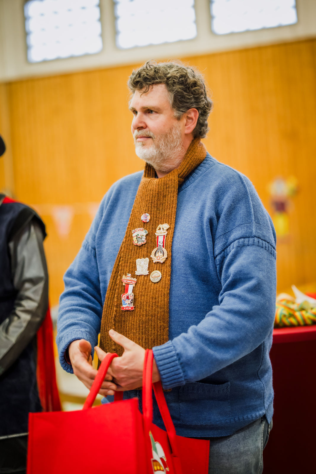 Chris macht gerade alles zum letzen Mal. Angefangen damit, ein letztes Dreigestirn auszuwählen und zu proklamieren, die Session zu eröffnen, Ehrungen zu verleihen, Präsidenten ins Amt zu heben … Oft ist er derjenige gewesen, der andere ehrt, wertschätzt, beschenkt. Dieses Jahr ist er der Geehrte, der erstmal lernen muss, die Wertschätzung, die ihm entgegen gebracht wird, auch anzunehmen. Besonders freut er sich über kulinarische Geschenke, wie beispielsweise eine lebenslange Einladung zum Hämmchenessen bei der KG Bickendorf oder die Einladung auf die „Rocholomäusist Kölns größte und wohl auch bekannteste Pfarrsitzung. Die Erklärung für den ungewöhnlichen Name des Veranstalters, der KG. Rocholomäus, ist ganz einfach: Bei der Gründung 1949 entschied man sich mit Rocholomäus einfach für eine jecke Kombination der beiden Bickendorfer und Ossendorfer Pfarrpatronen St. Rochus und St. Bartholomäus (die Pfarrei St. Dreikönigen ist erst später hinzugekommen). Feiern tun die Rocholomäer immer für einen guten Zweck: Alle Überschüsse der Großen Sitzung kommen sozialen Aufgaben der Pfarreien zugute, die darüber hinaus noch vom Freundeskreis der Gesellschaft unterstützt werden. More Präsidenten-Tribüne“ mit Eierlikör-Flatrate (selbstverständlich im Schokobecher).