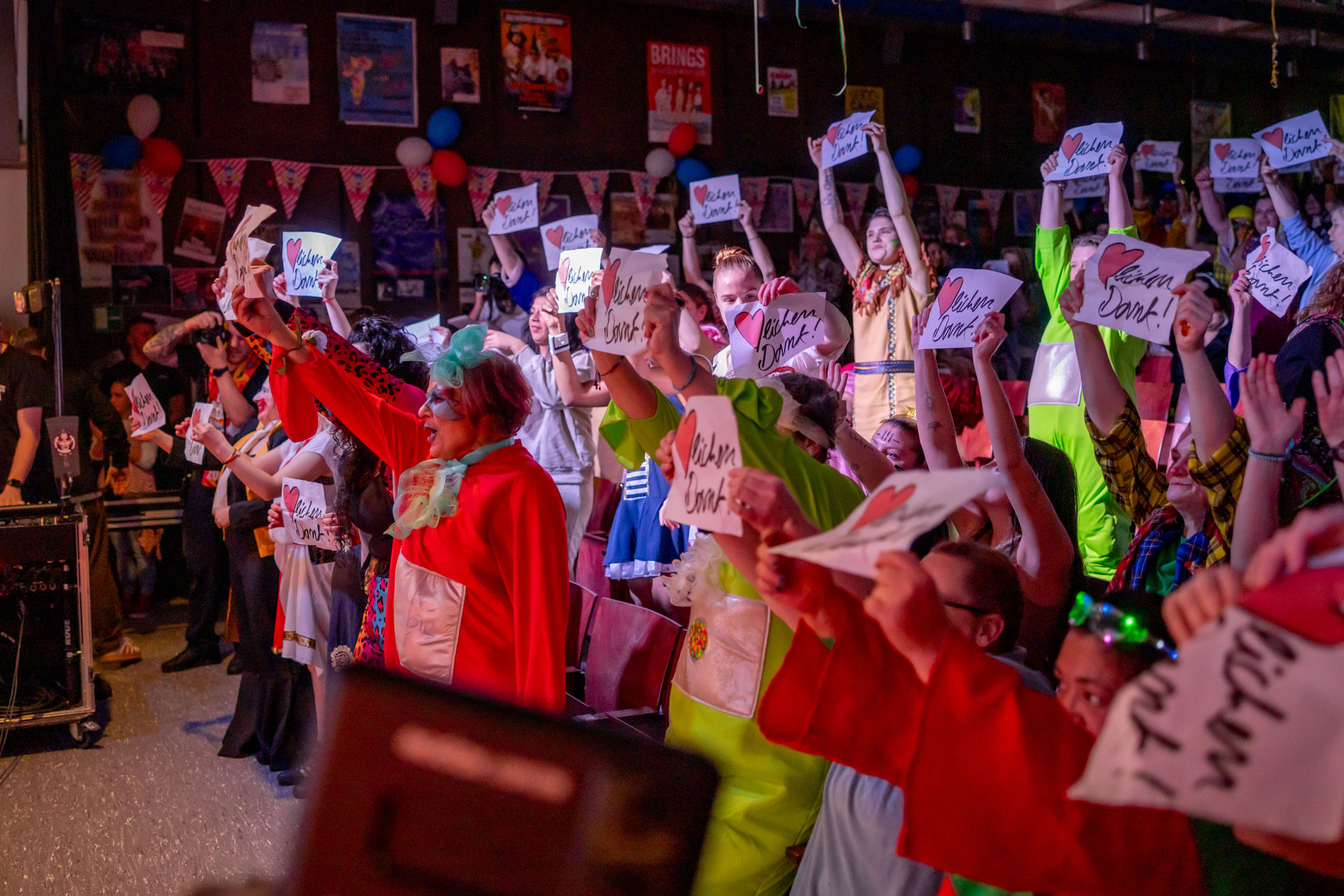 Wir gehen in den Saal, die Fööss sind noch auf der Bühne, die Frauen feiern. Viele kennen weder Chris noch irgendwelche Lieder, auch Kölsch ist für viele nicht verständlich. Trotzdem feiern sie hier zusammen, weil es ein Stück Normalität bedeutet, die sie hier geschenkt bekommen. Karnevalkommt von „Carne vale! Fleisch, lebe wohl!“und bringt den Charakter des Festes als Freudenfest vor der langen Fastenzeit zum Ausdruck bringt. More ist in Köln fest in der Gesellschaft verankert und gehört deshalb selbstverständlich auch zum Resozialisierungsprogramm für die Frauen in Haft.