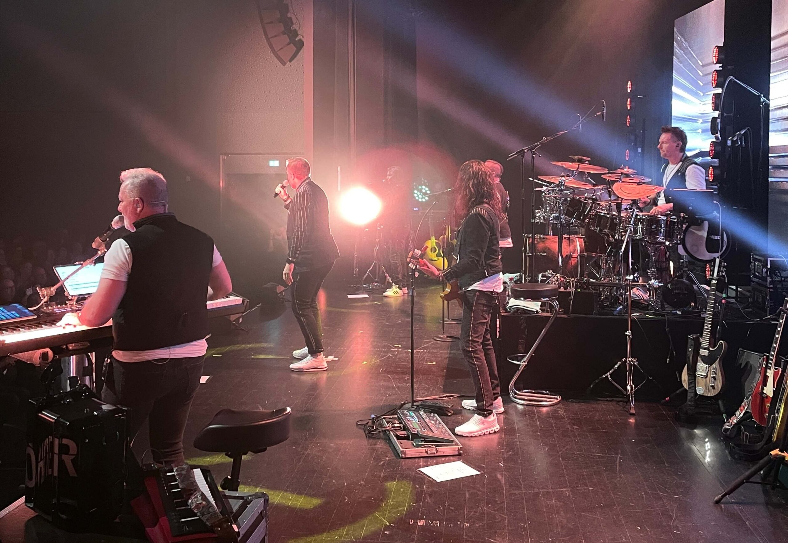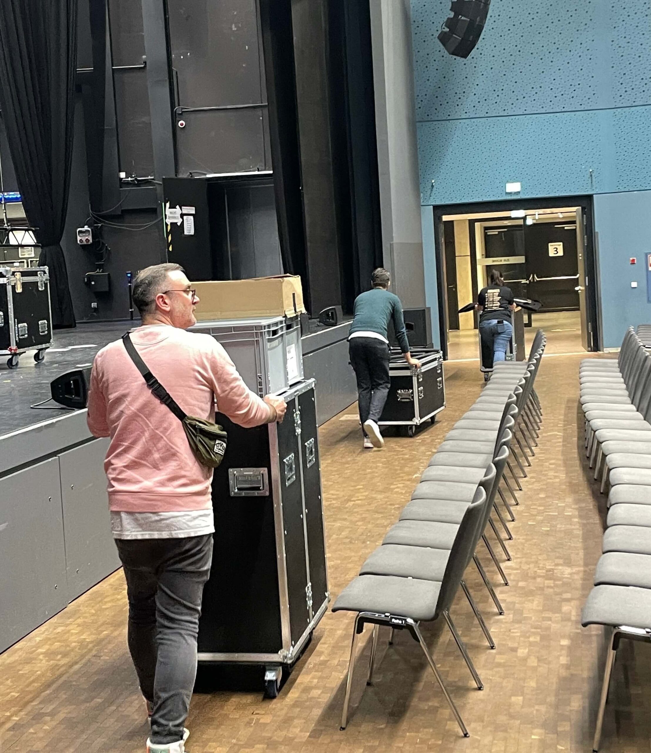 Bevor die Türen für das Publikum aufgingen, habe ich mich mal kurz in die Halle geschlichen. Ich war vorher noch nie in der Stadthalle Troisdorf und muss gestehen: Die Wege hinter den Kulissen sind nicht direkt zu durchschauen – ich hab mich gefühlt wie in einem Labyrinth. Den Saal und die Halle an sich fand ich richtig klasse.