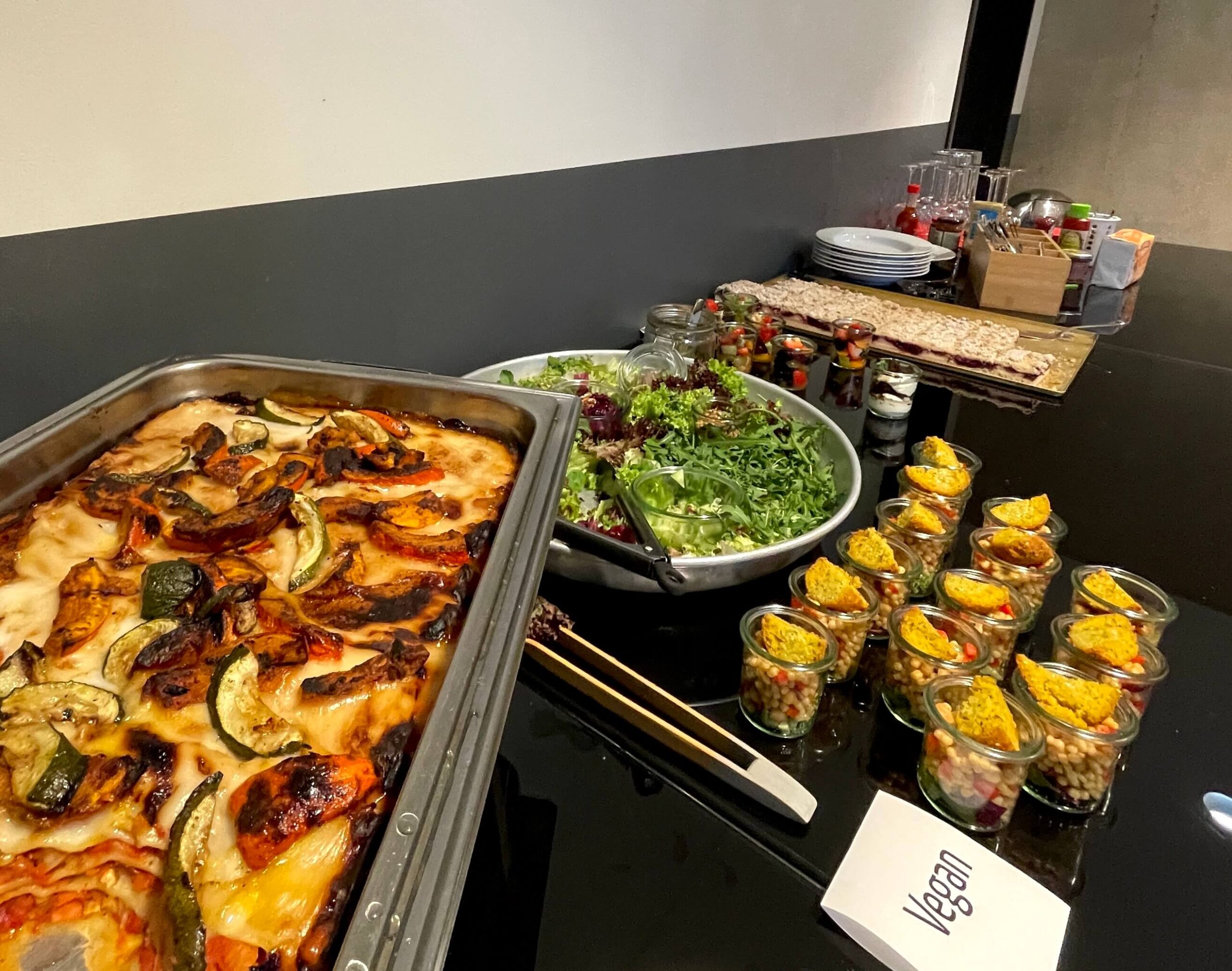 Danach ging es dann in den Backstage-Bereich, wo wir herzlich von der Band, Pedro vom Management und der ganzen Crew empfangen wurden. Das Buffet war schon angerichtet: Von Schokoriegeln bis zur veganen Lasagne war für jeden Geschmack was dabei. Man braucht einfach den richtigen #Jecksnack, bevor es dann losgeht.