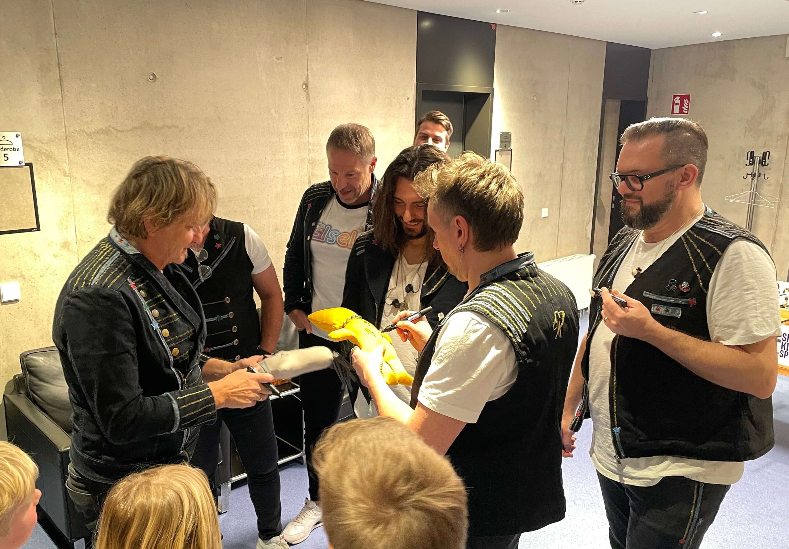 Ein ganz besonderer Moment war eines meiner Highlights: Kurz vor der Show gab es ein Meet and Greet mit ein paar Kindern. Einer der kleinen Fans war total fixiert auf den Song „Gisela“ und hörte das Lied zu Hause wohl in Dauerschleife. Die Eltern hatten der Band einen Brief geschrieben, der wirklich jeden berührt hat. Die Band hat sich viel Zeit genommen, es wurden Stofftiere unterschrieben und Geschenke verteilt. Aber auch die Kids mussten der Band Autogramme auf ihren mitgebrachten Bildern als Erinnerung geben. Das zeigt, dass die Jungs das Herz am rechten Fleck haben.