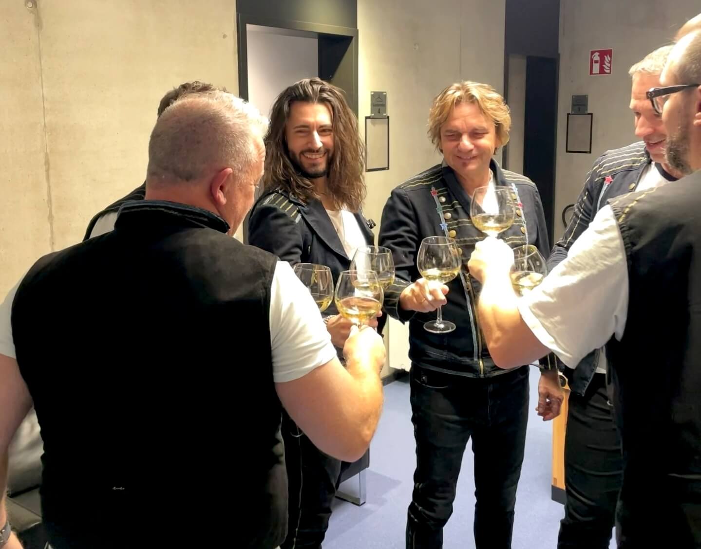 Bevor es dann endlich auf die Bühne ging, gab es noch das obligatorische Ritual: Ein gemeinsames Anstoßen. Ohne das geht keiner raus!