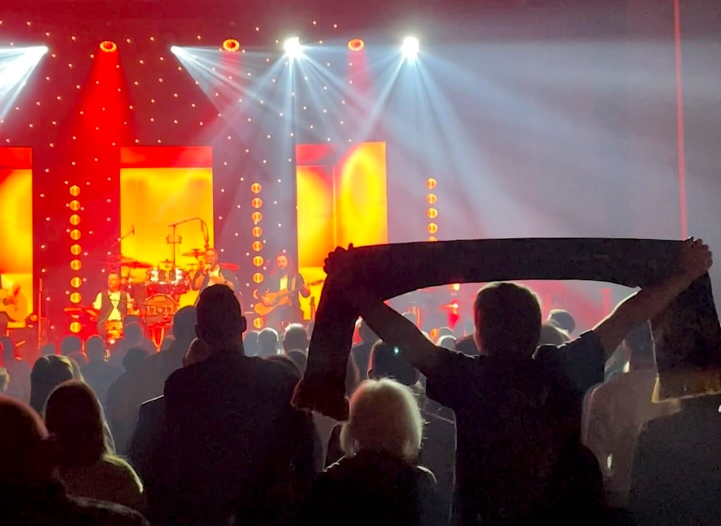 Der Abend war eine perfekte Mischung. Auf Songs wie „Jlöcksmomente“ oder „Wenn nicht jetzt wann dann“ folgte zum Abschluss der ersten Hälfte ein echtes Highlight für die Augen: Bei „Schönste Stroß“ wurde es ganz ruhig, und die Stadthalle verwandelte sich in ein Lichtermeer aus Tausenden Handy-Lampen.