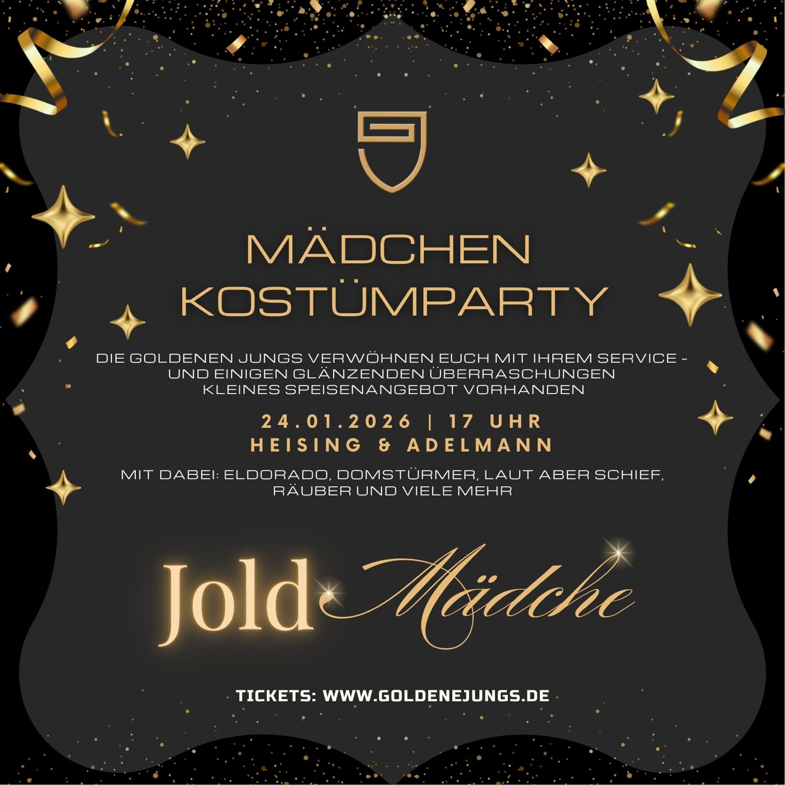 17:00 VeranstalterGoldene Jungs e.V.Heising & Adelmann Köln24jan17:001. Joldmädche Kostümparty im H&A