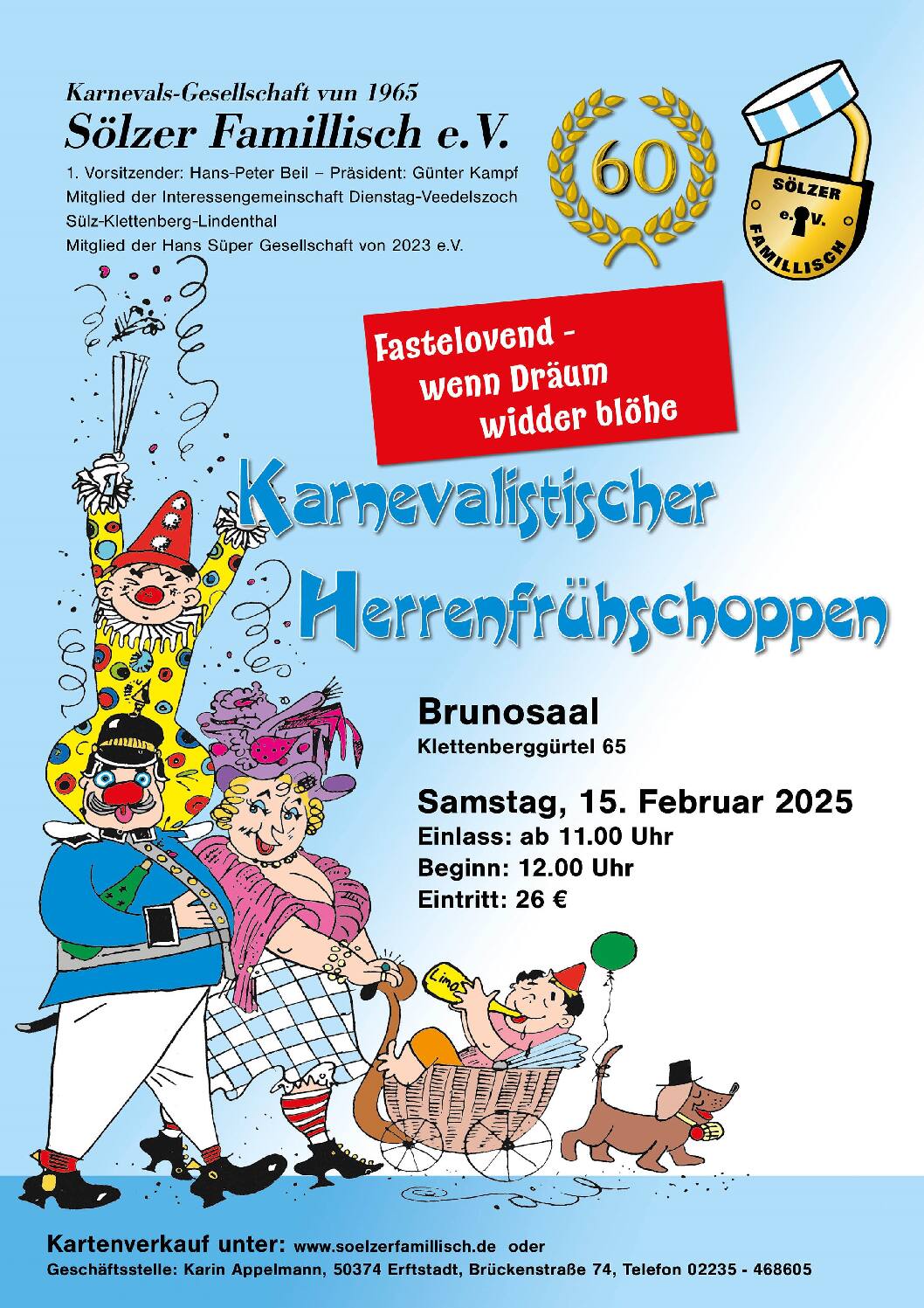 12:00 VeranstalterSölzer FamillischBrunosaal, Klettenberggürtel 6507feb12:00Karnevalistischer Herrenfrühschoppen