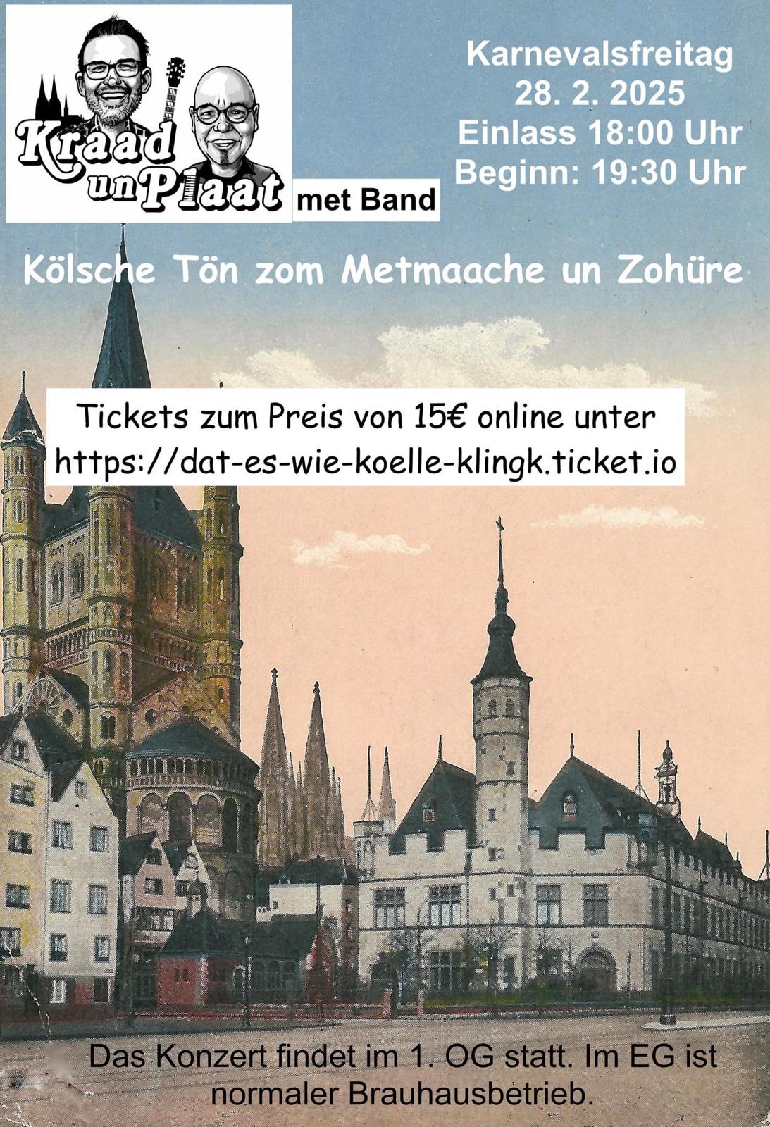 19:30 VeranstalterKraad & Plaat un BandFRÜH „Em Golde Kappes“13feb19:30Kölsche Tön zom Metmache und Zohüre