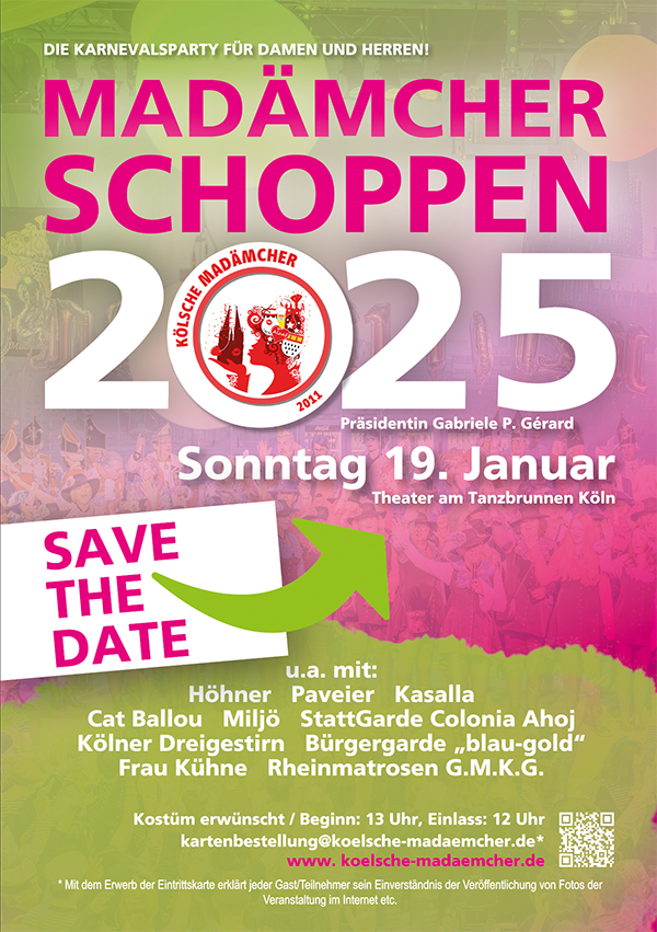 18:00 VeranstalterKG De Kölsche Madämcher e.V.Theater am Tanzbrunnen, Rheinparkweg 106feb18:00Madämcher Schoppen