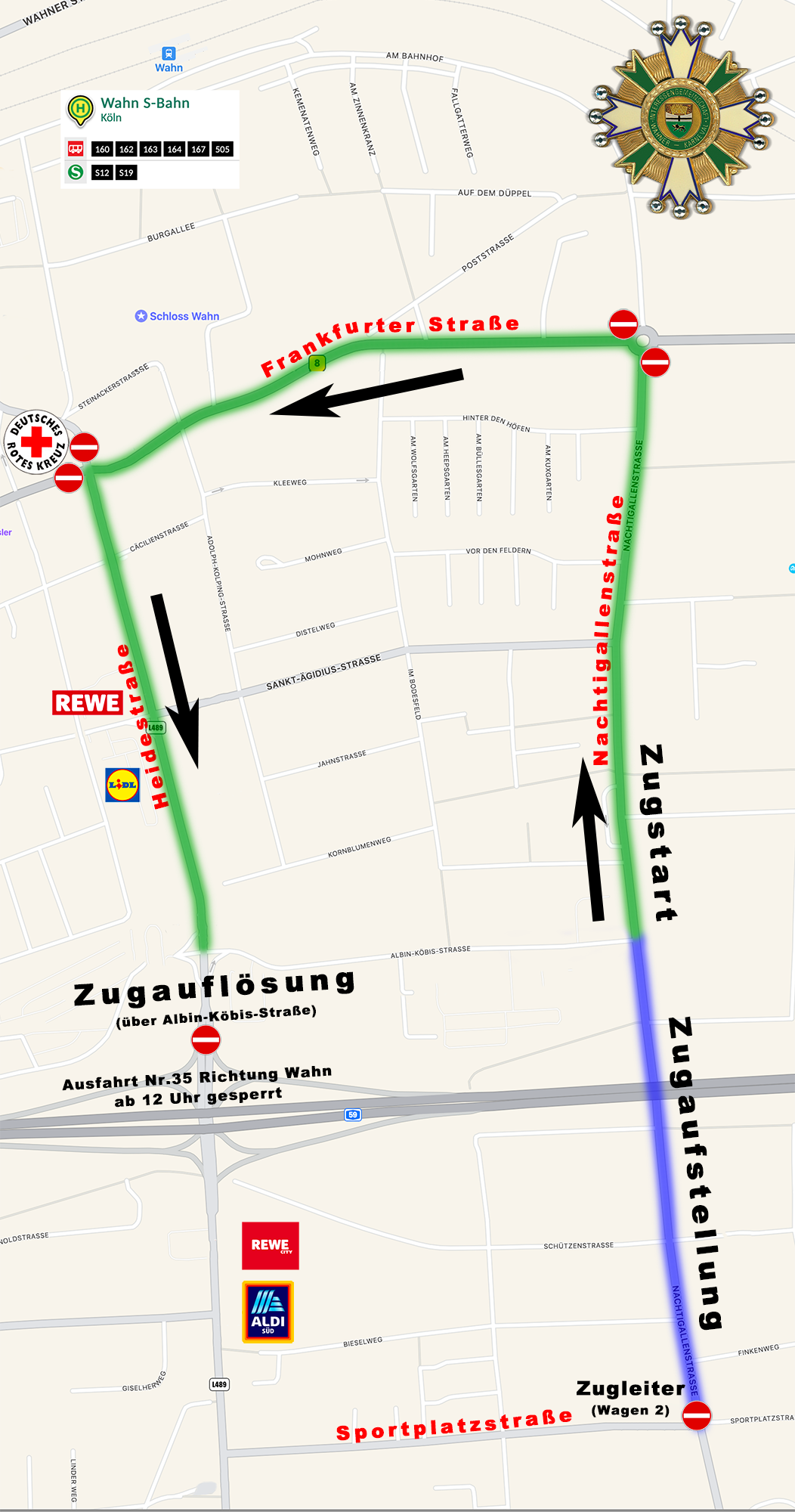 Zugweg: Nachtigallenstraße – Frankfurter Straße – Heidestraße
